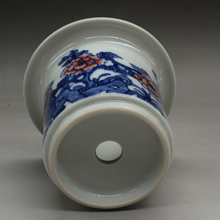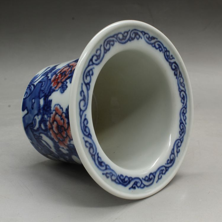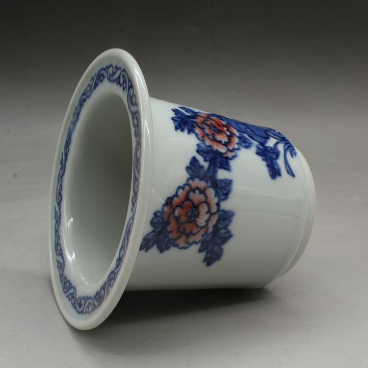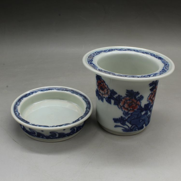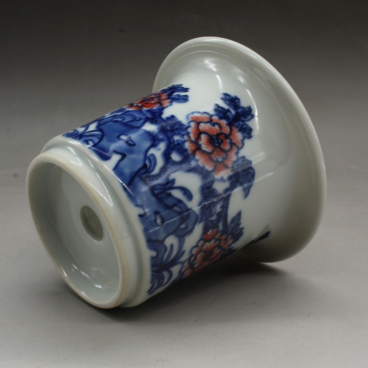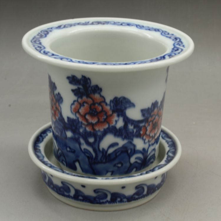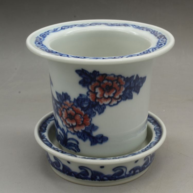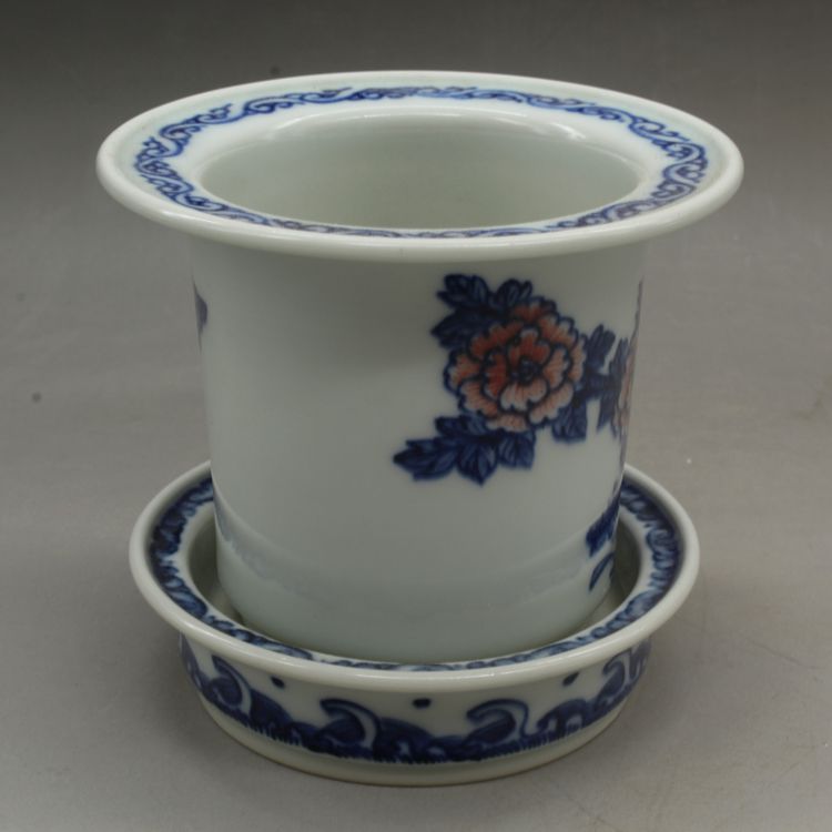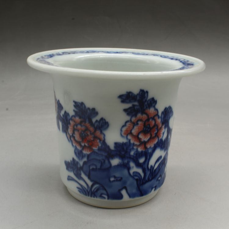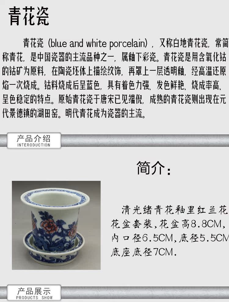 清光緒青花釉里紅蘭花多肉菖蒲花盆古董古玩瓷器仿古擺件收藏品1入