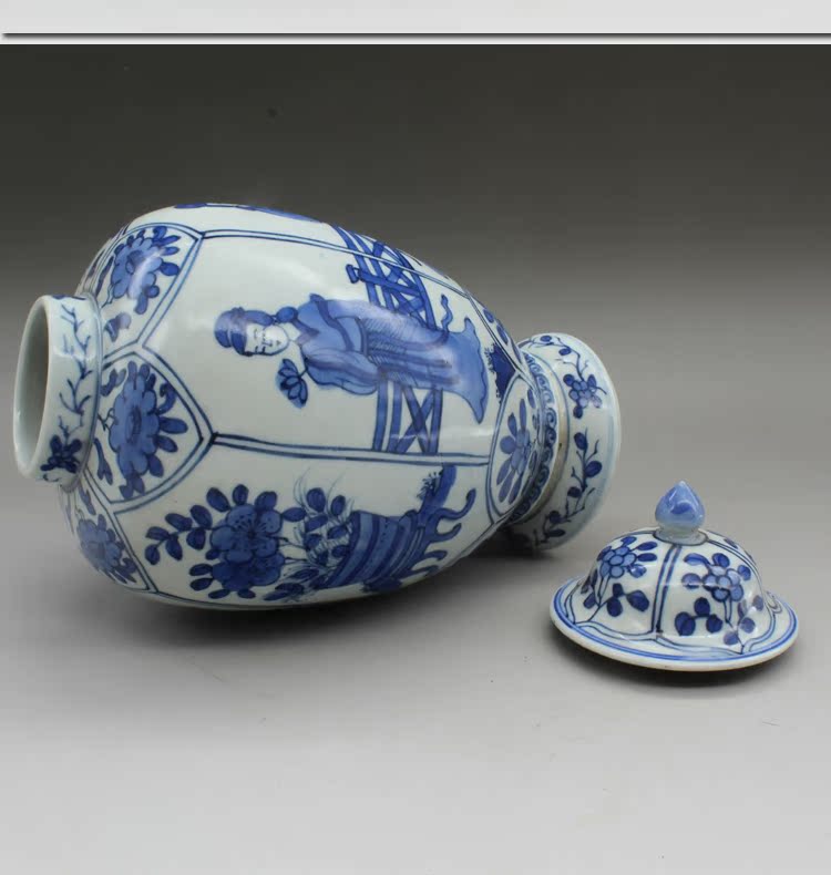 仿清乾隆青花故事將軍罐古玩瓷器老貨古董老陶瓷仿古擺件收藏1入