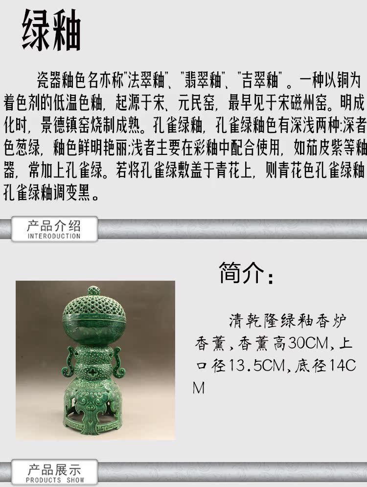 清乾隆綠釉香薰香爐古董老陶瓷古玩瓷器老貨舊貨擺件老物件收藏品1入