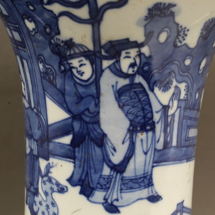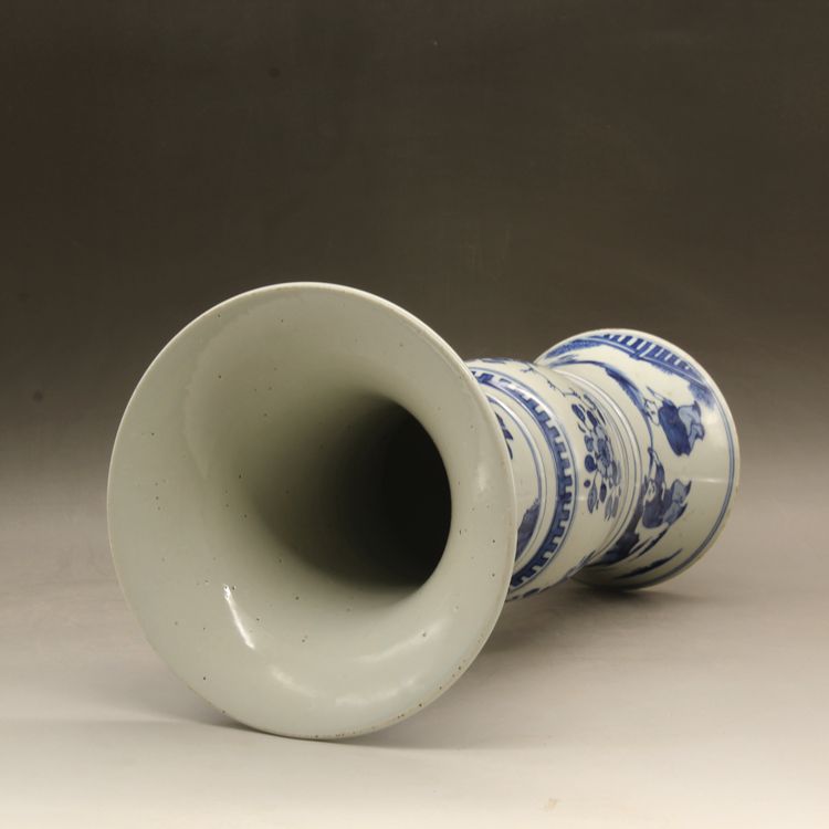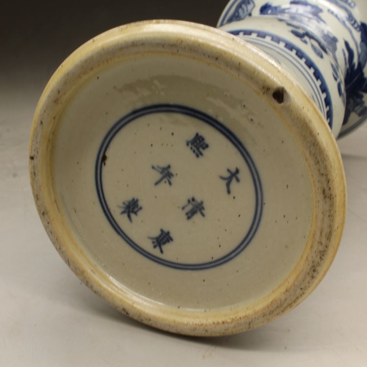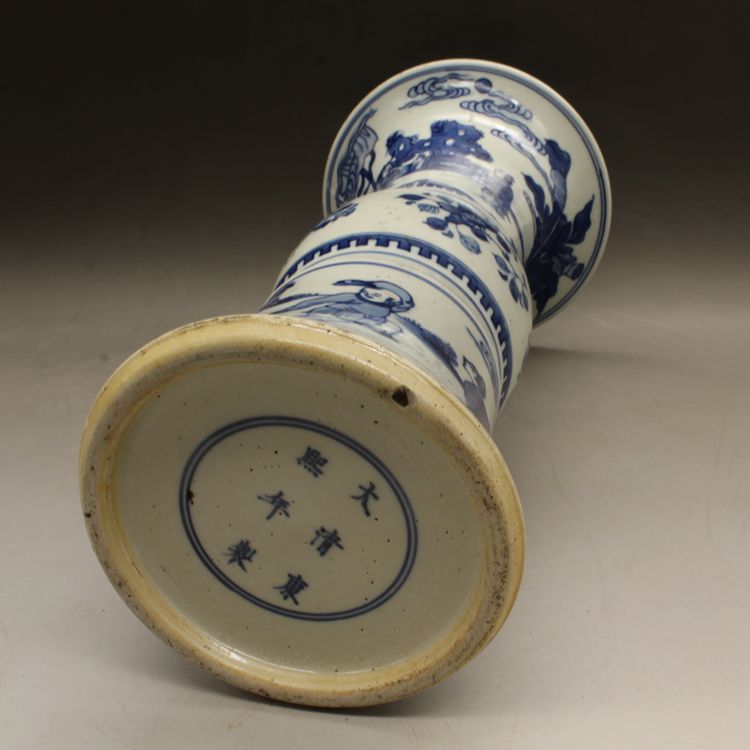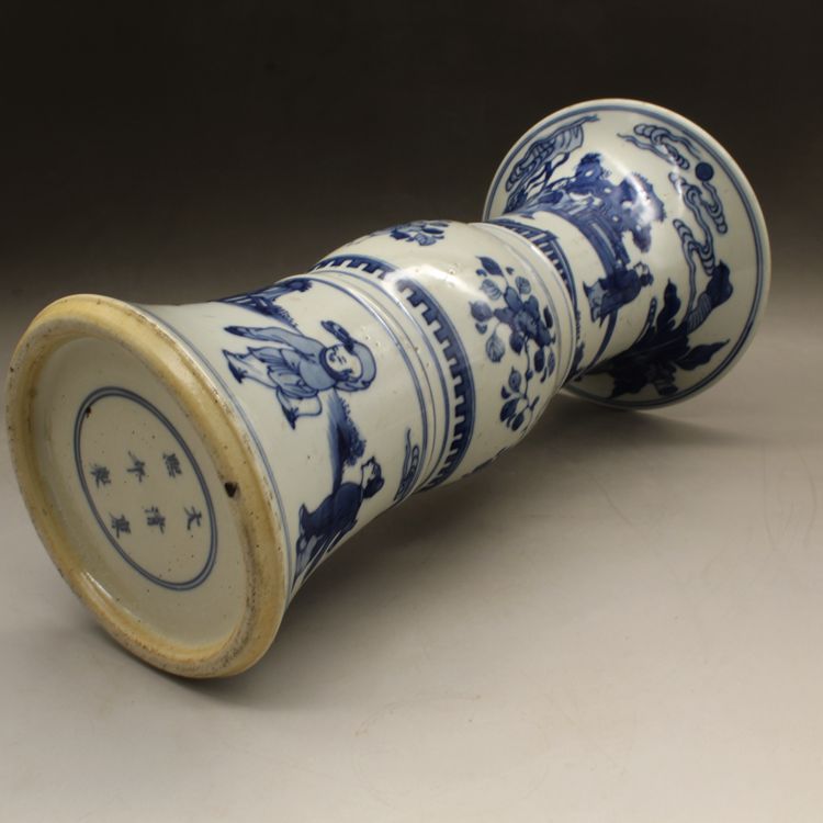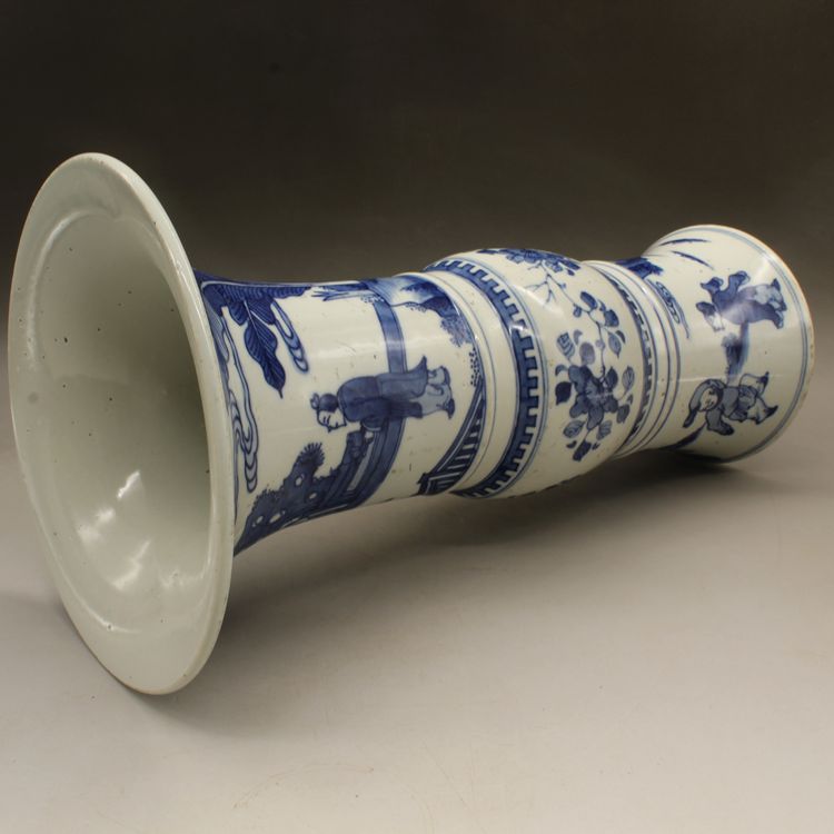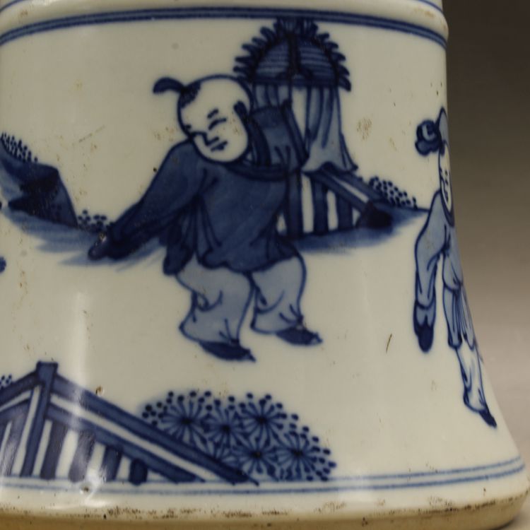 清康熙青花故事花插(一對)古玩瓷器老貨古董老陶瓷舊貨擺件收藏1入