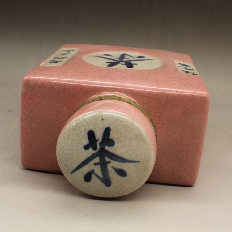 民國福元昌號黃釉四方茶葉罐茶葉罐古玩瓷器老貨古董仿古擺件收藏1入