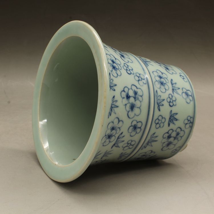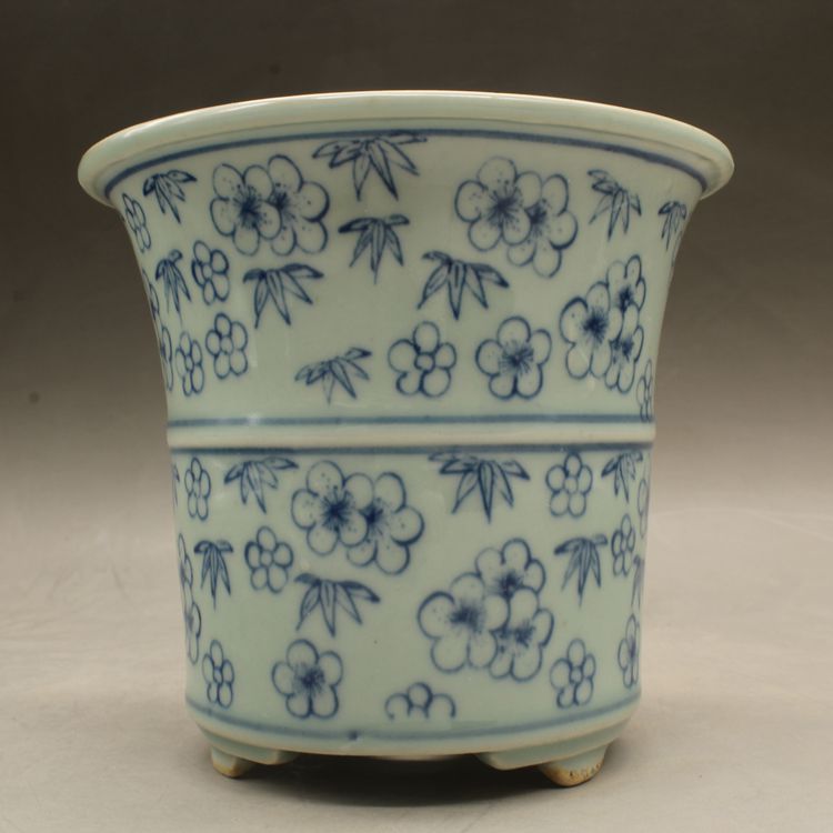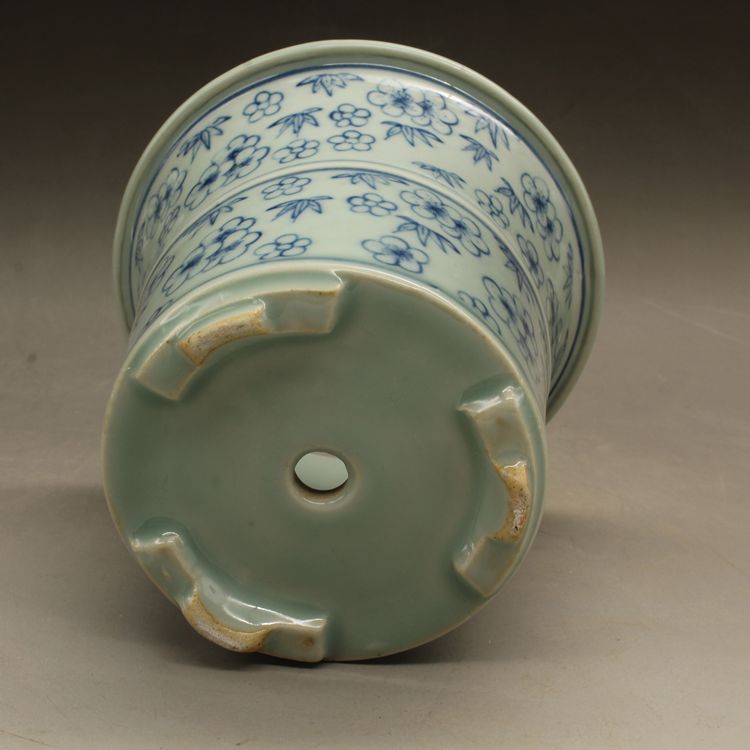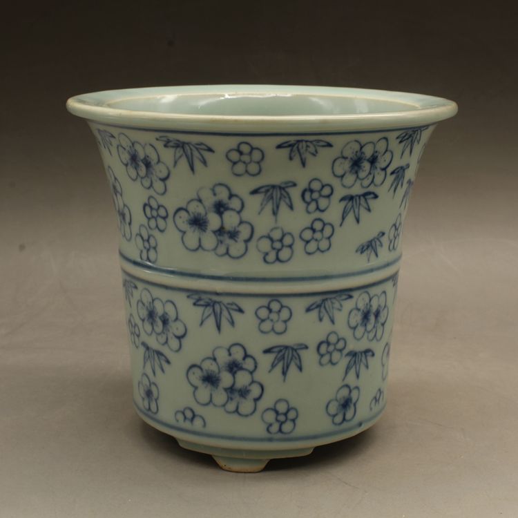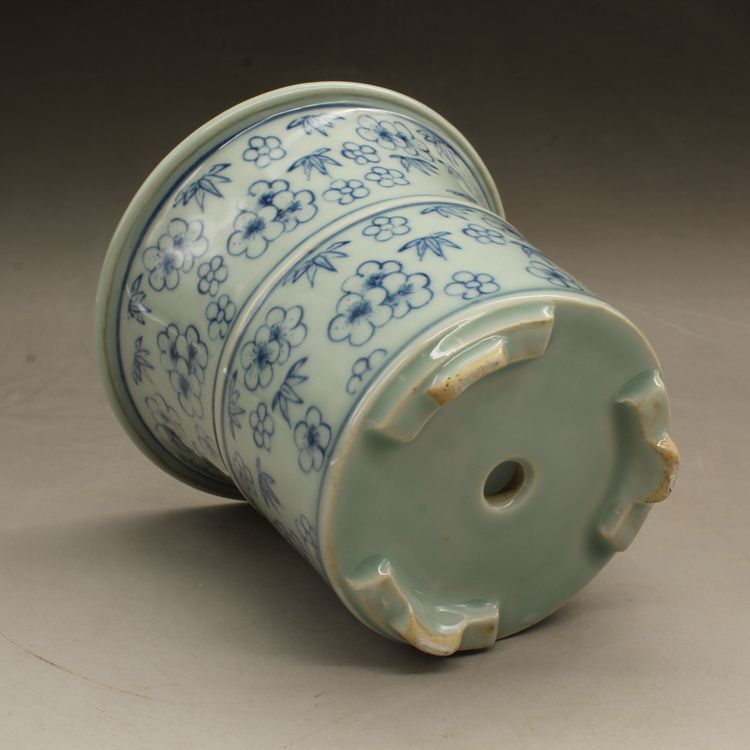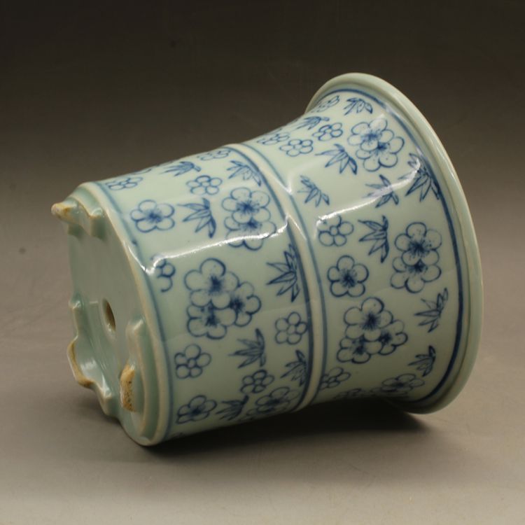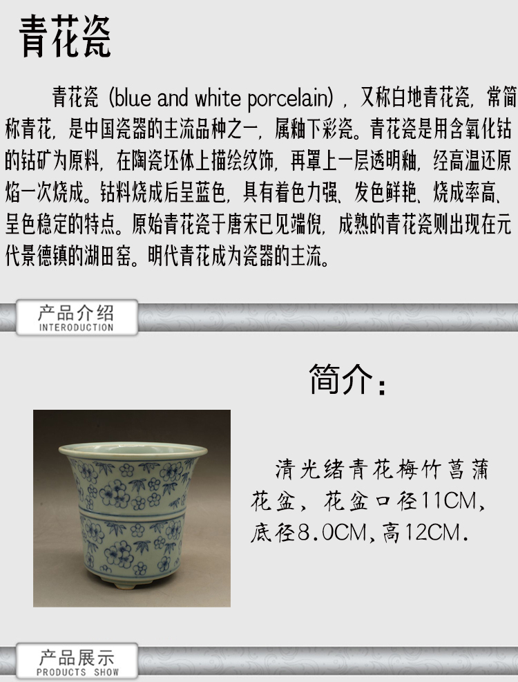 清光緒青花花多肉菖蒲花盆古董老陶瓷舊貨古玩瓷器老貨擺件收藏1入