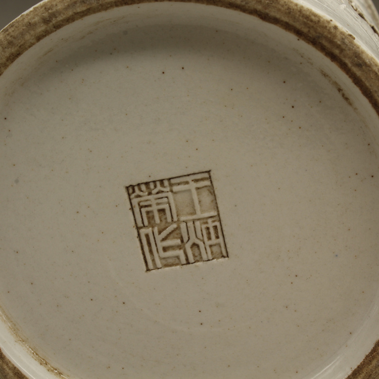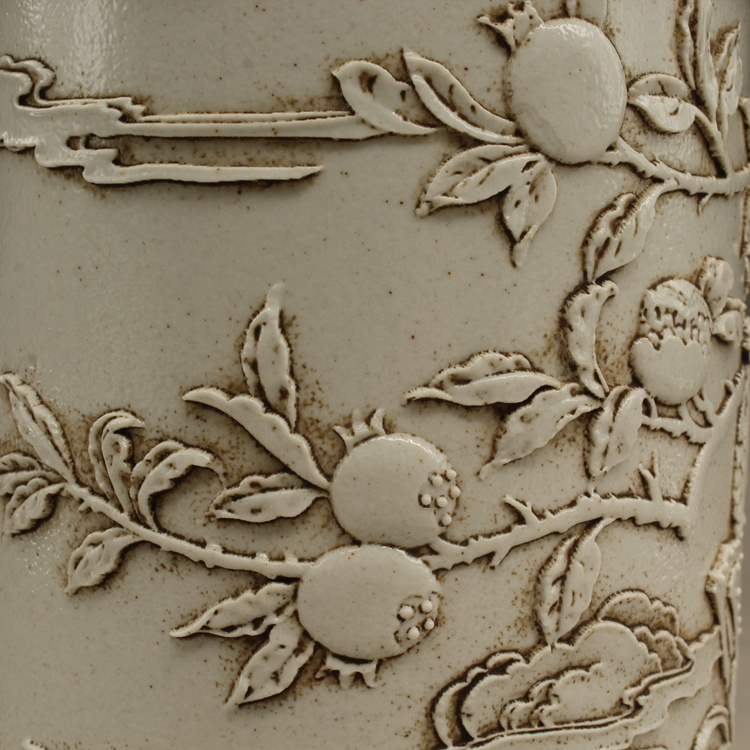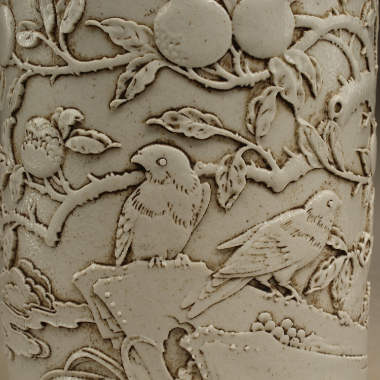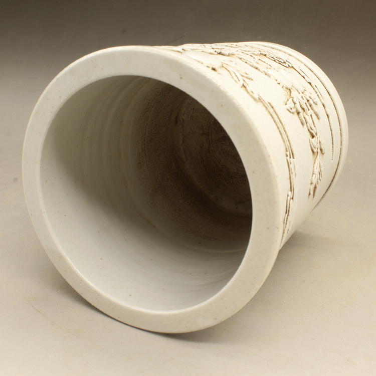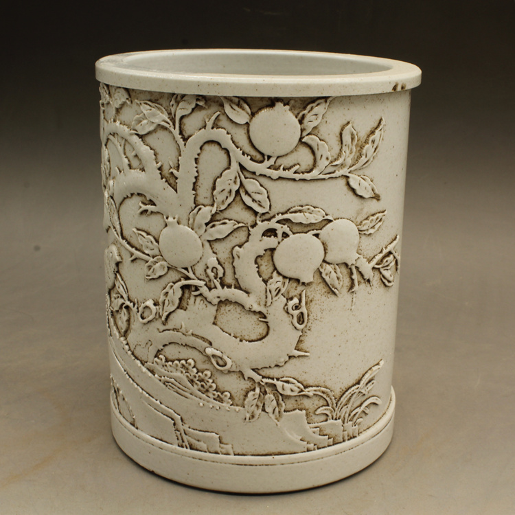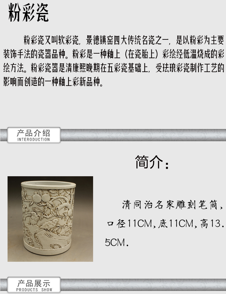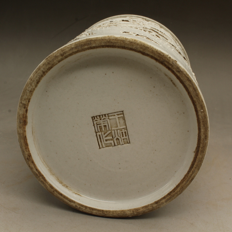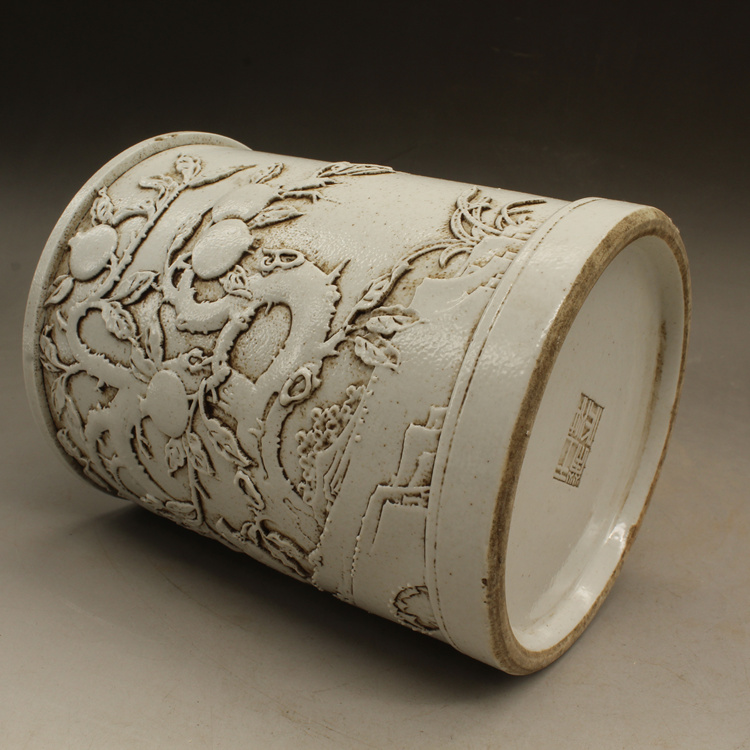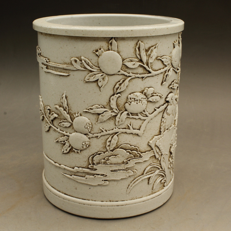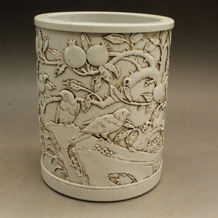 名家王炳榮雕刻鳥依枝頭筆筒古玩古董老陶瓷仿古瓷器擺件送禮收藏1入