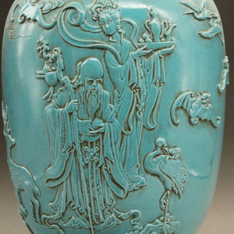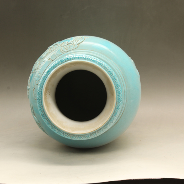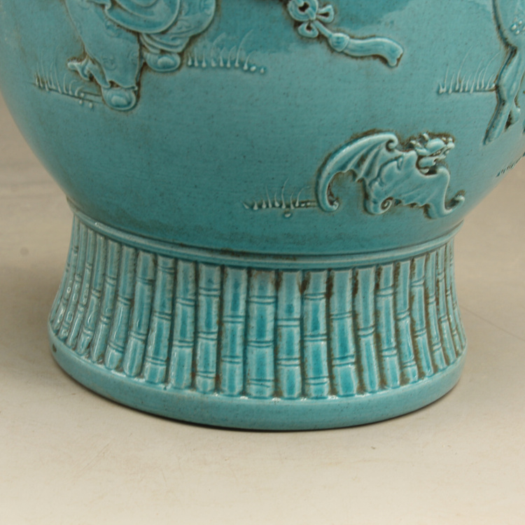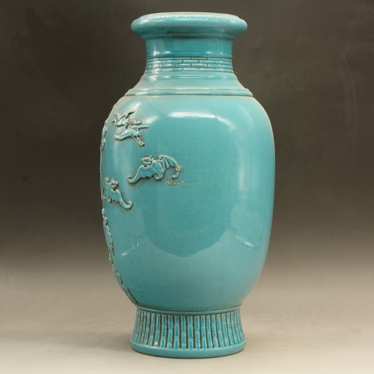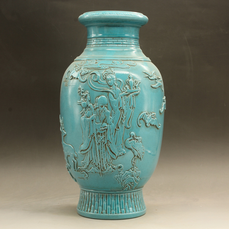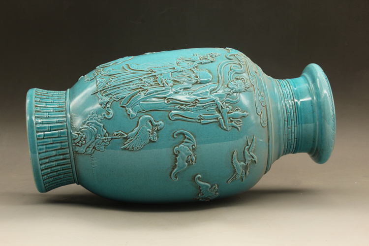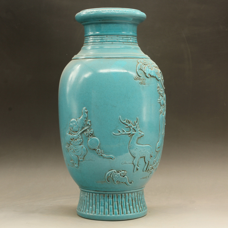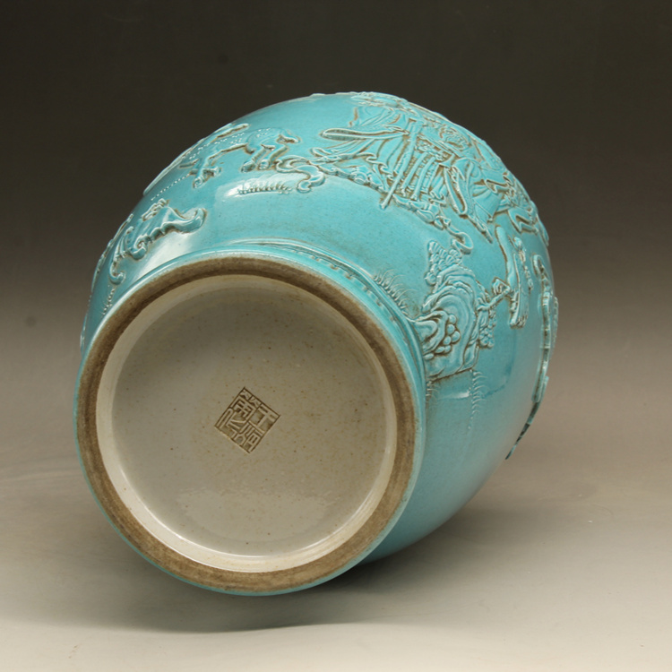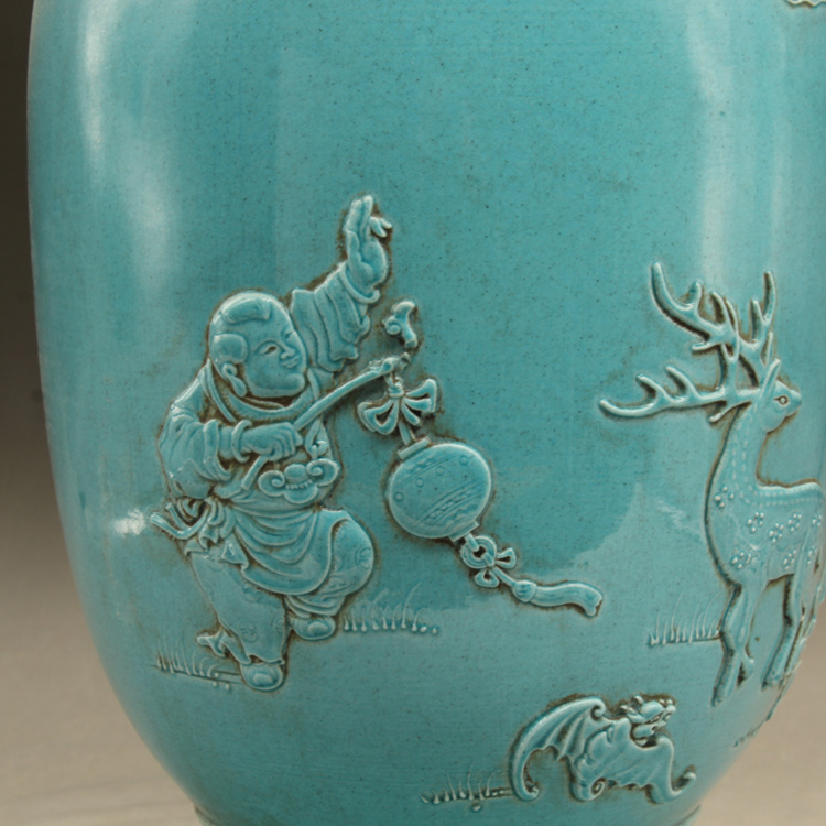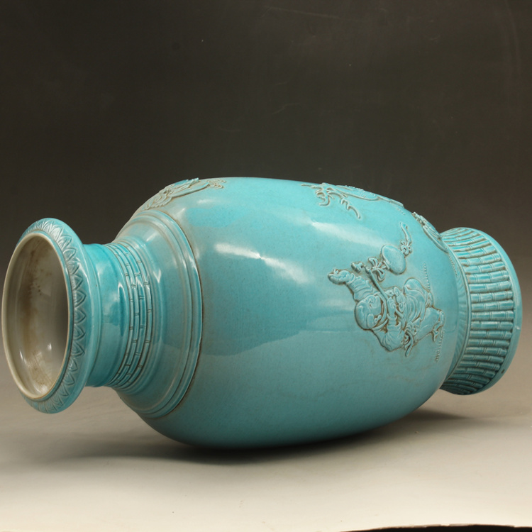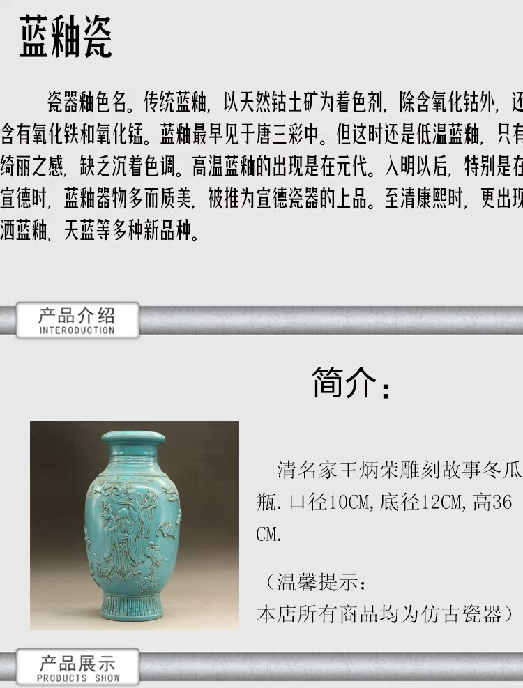 清光緒藍釉名家雕刻故事雕刻瓶古玩古董仿古瓷器做舊擺件收藏1入