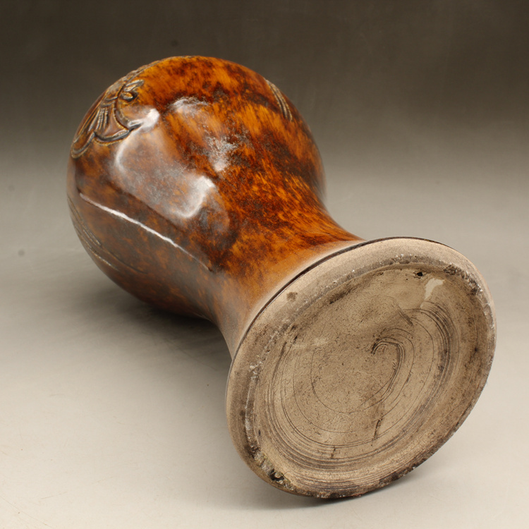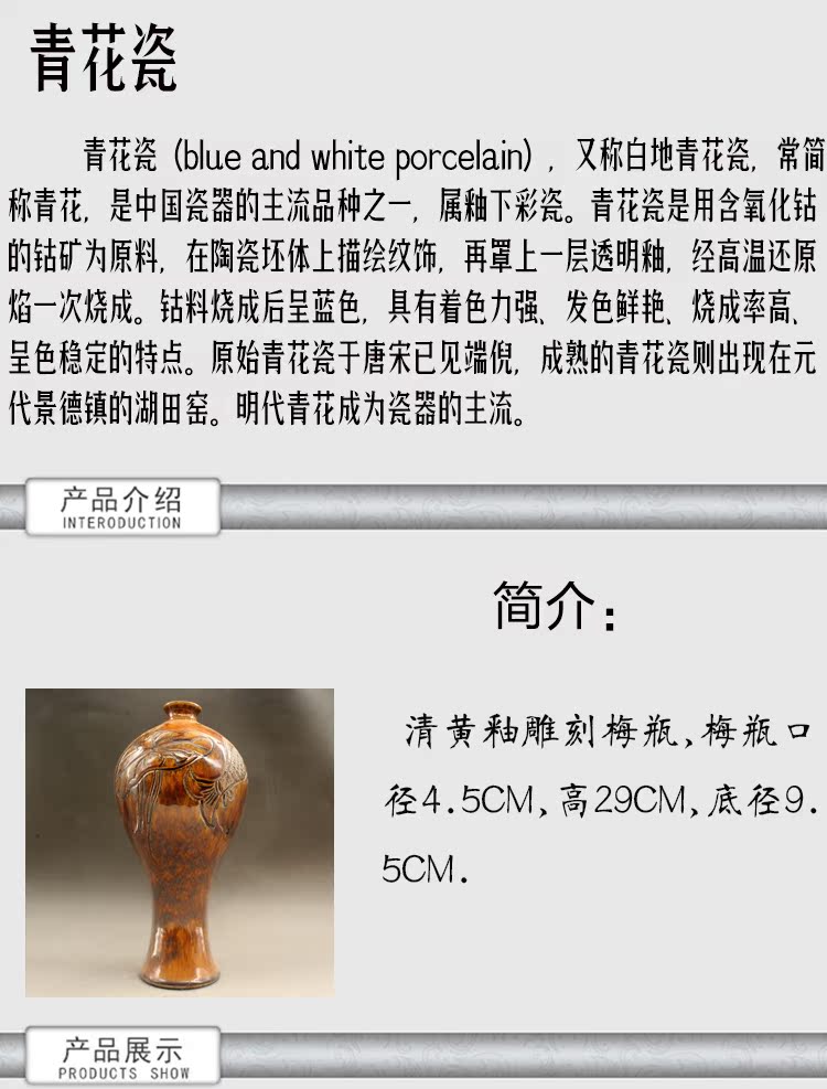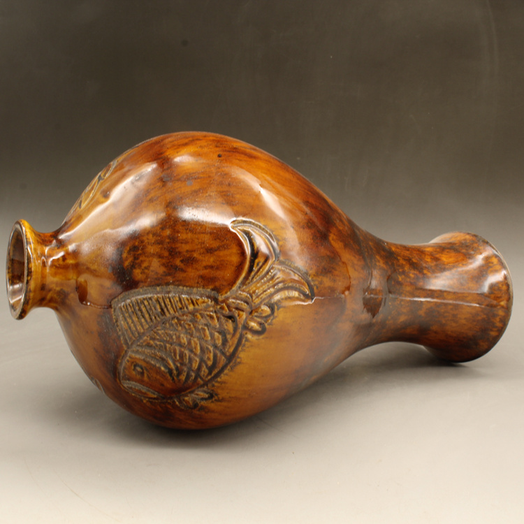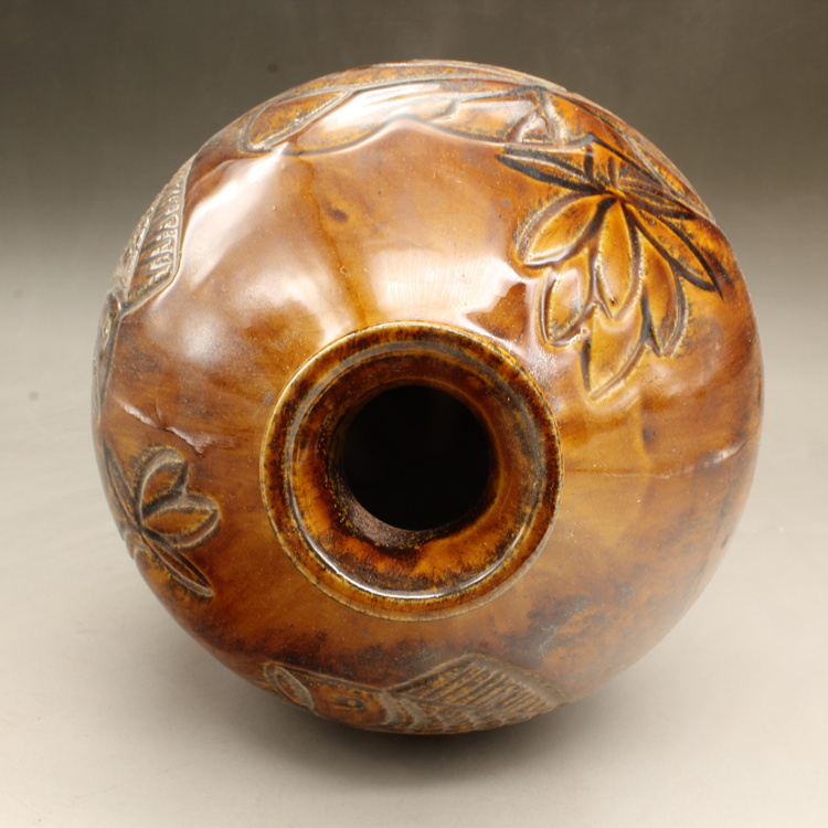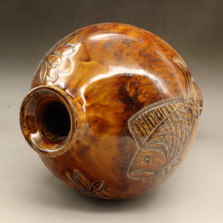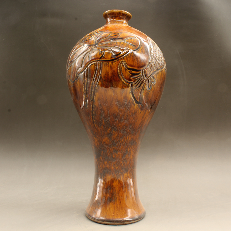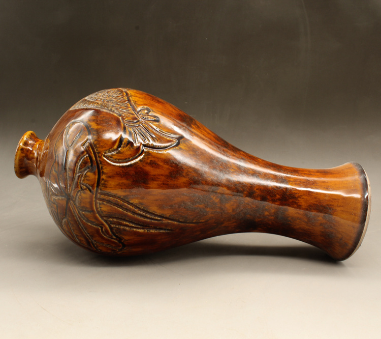 清光緒黃釉雕刻梅瓶古玩古董仿古瓷器做舊擺件收藏1入