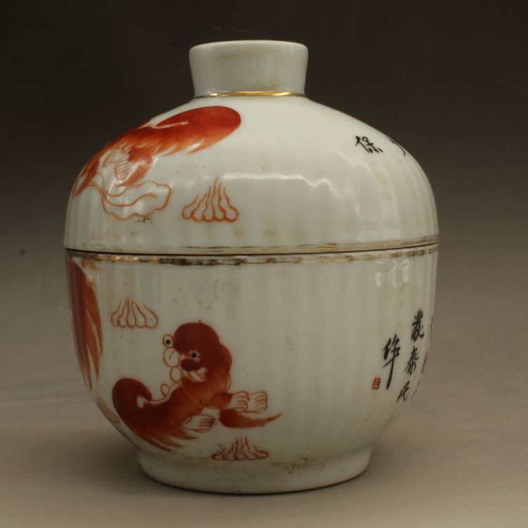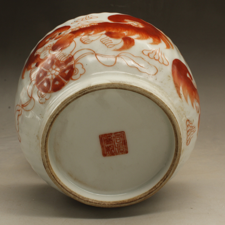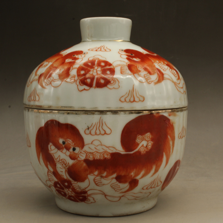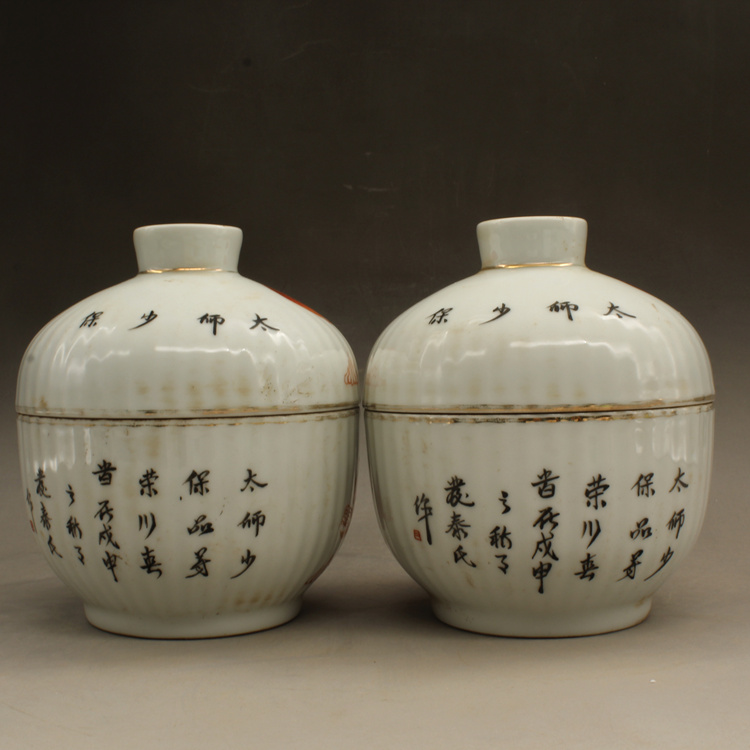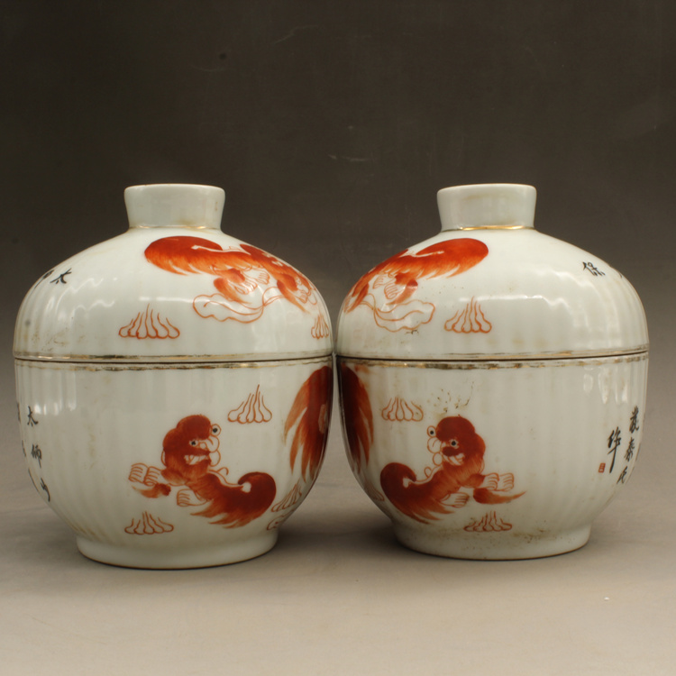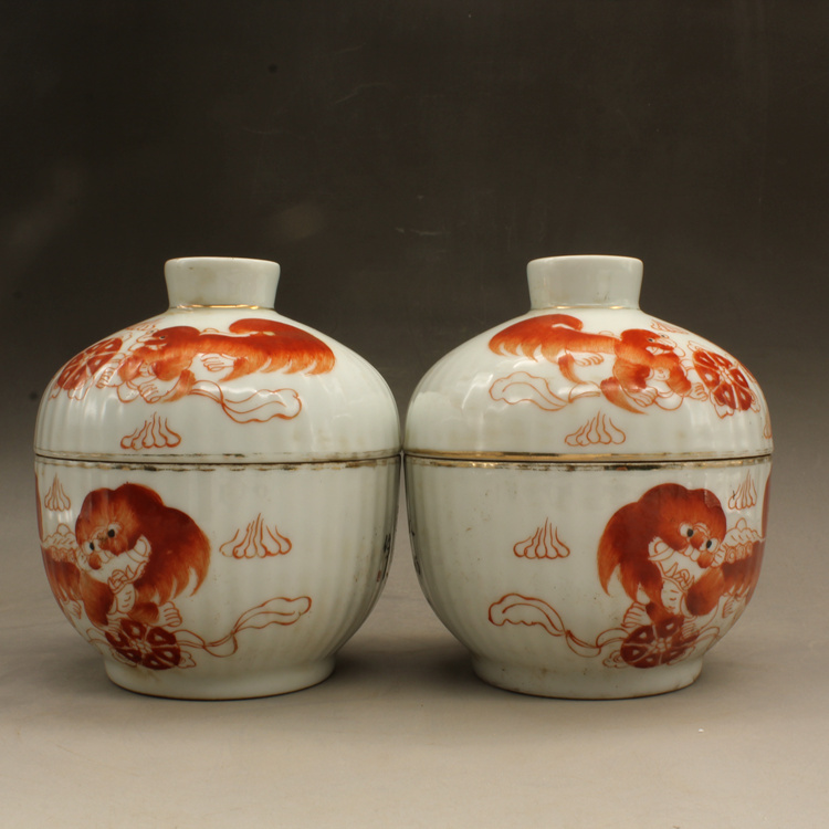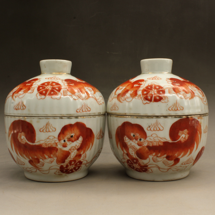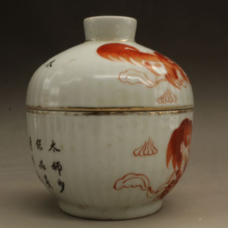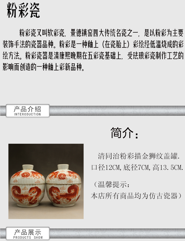 清同治粉彩太獅太保蓋罐(一對)古玩瓷器古董擺件仿古瓷器收藏1入