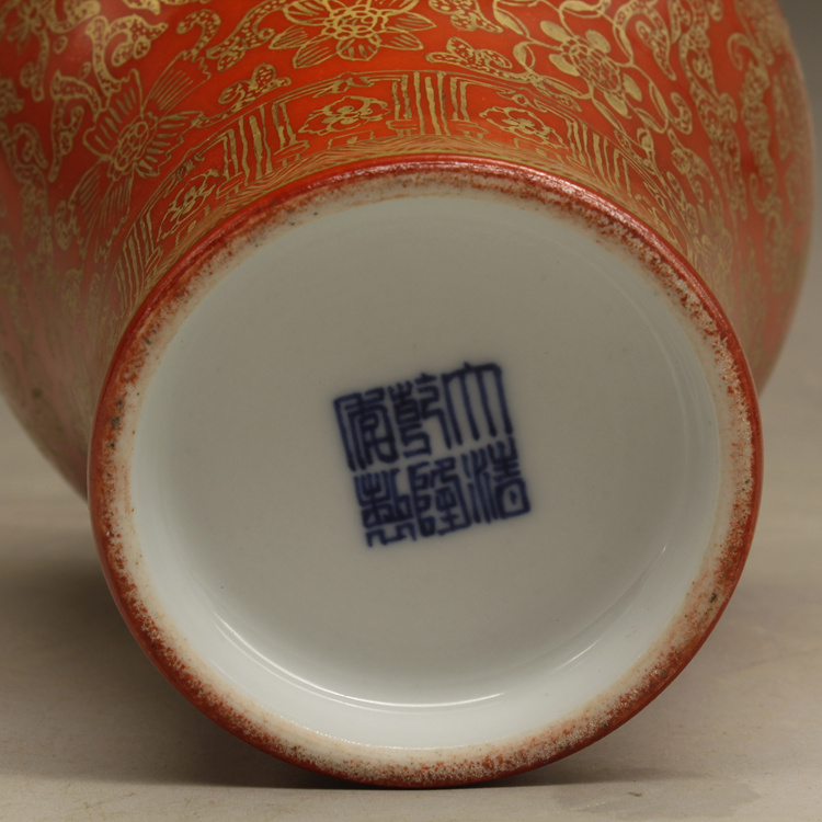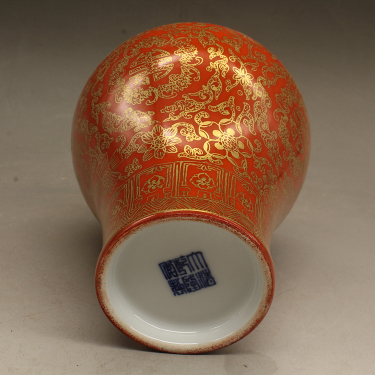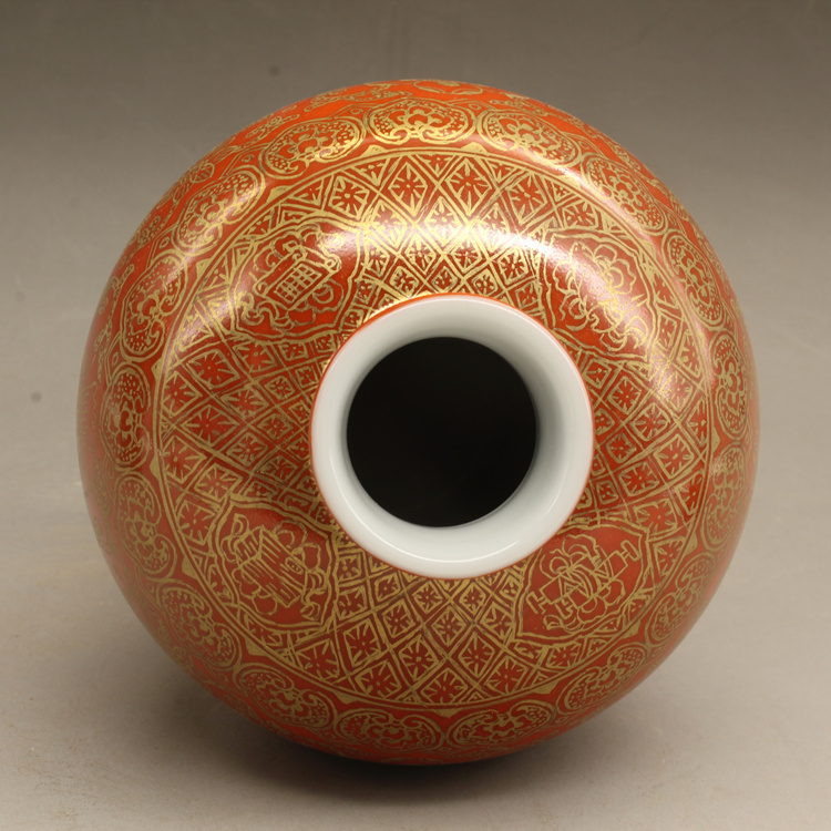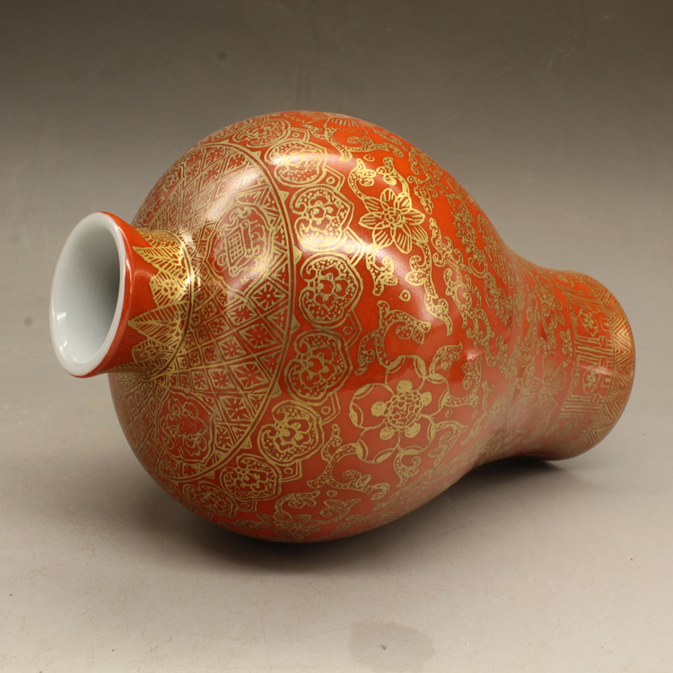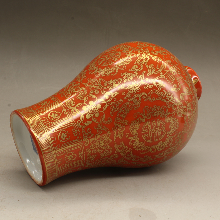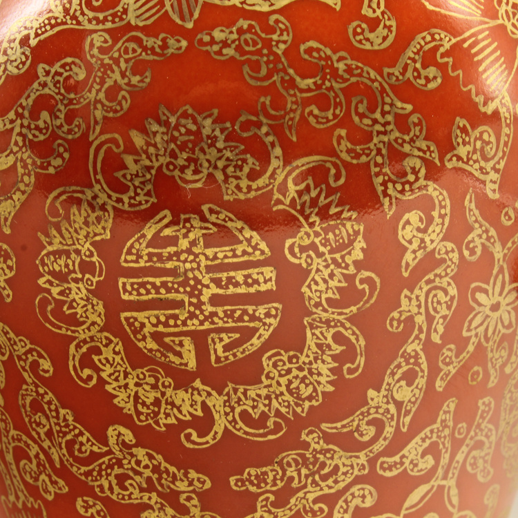 清乾隆紅釉描金帶蓋梅瓶(一對)仿古擺件古玩瓷器老貨收藏送禮1入