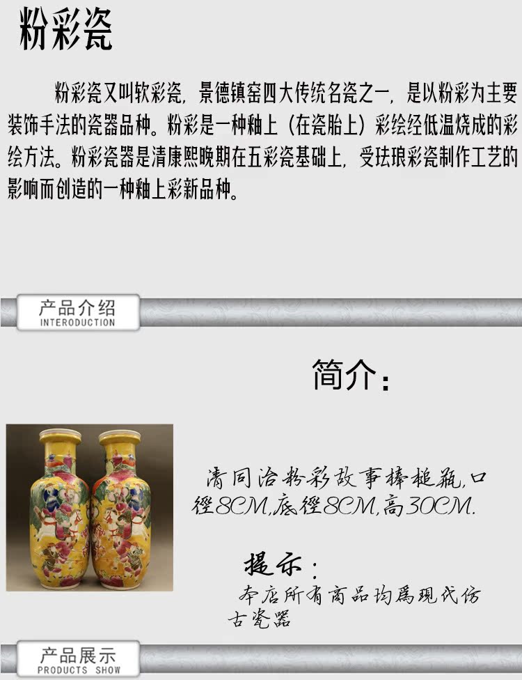 清同治粉彩故事瓶(一對)古玩瓷器古董擺件仿古做舊瓷器收藏1入