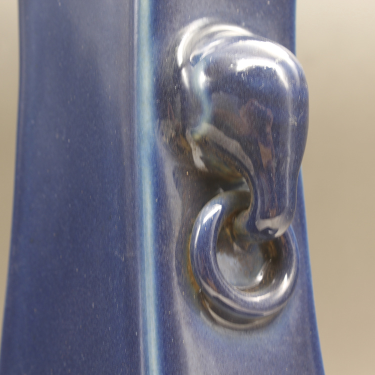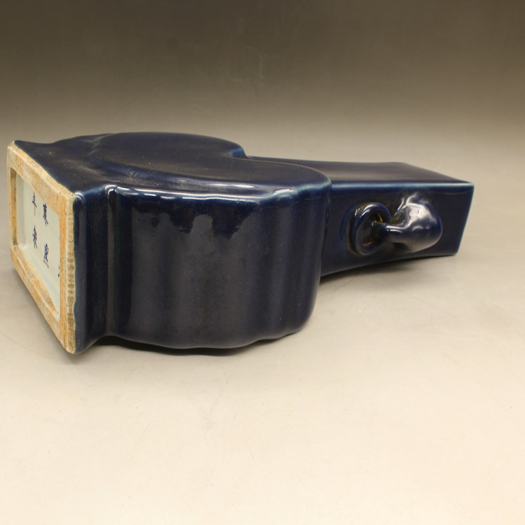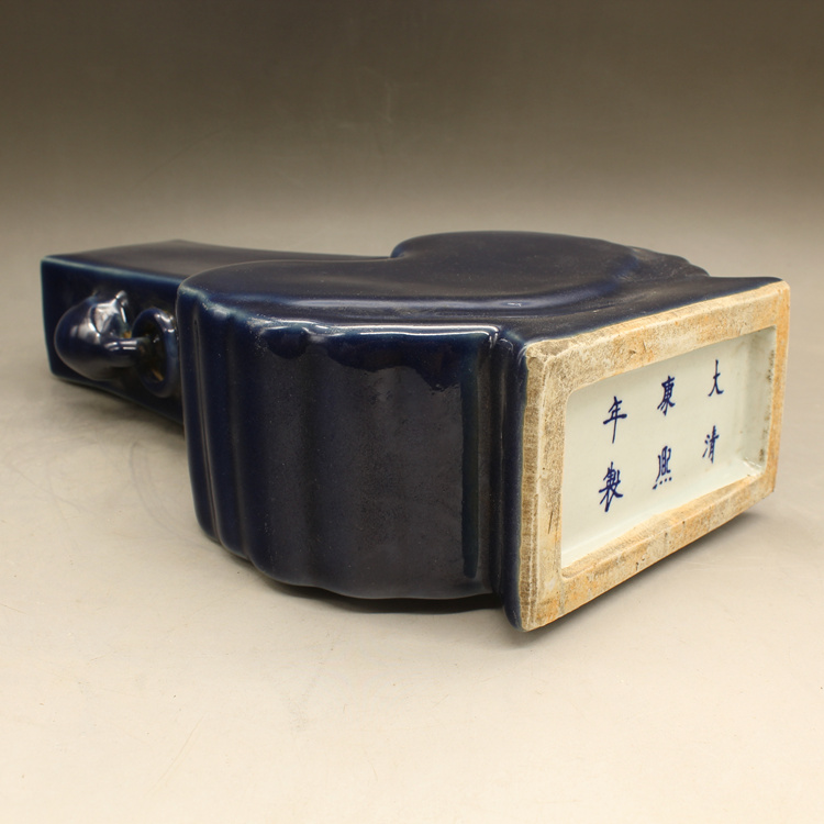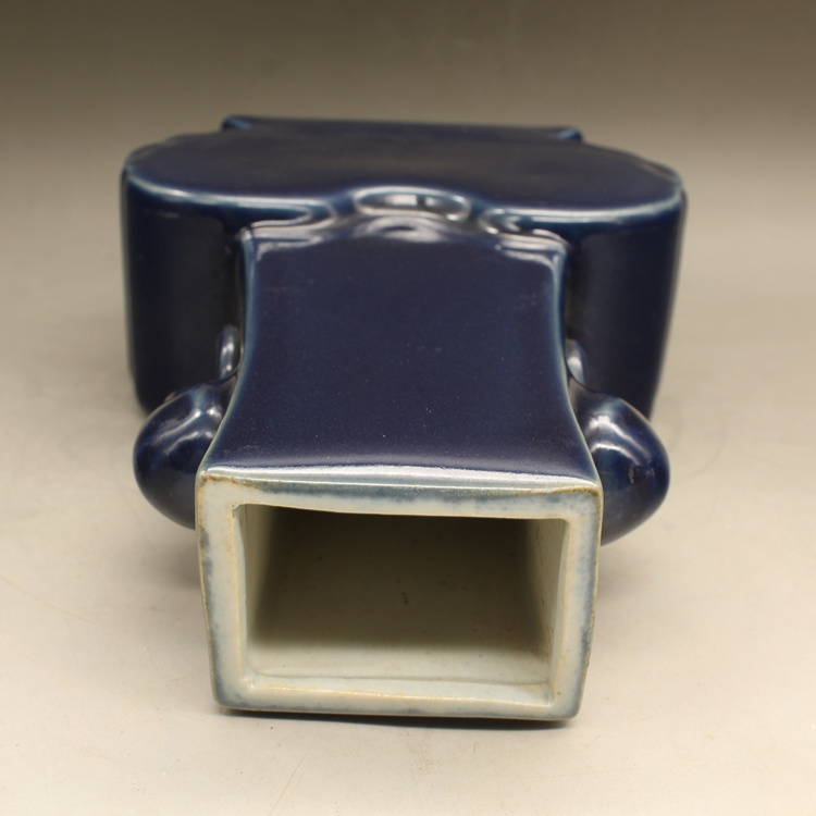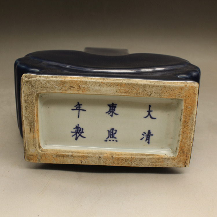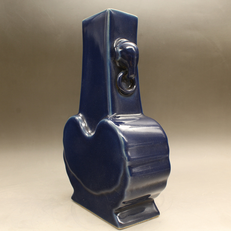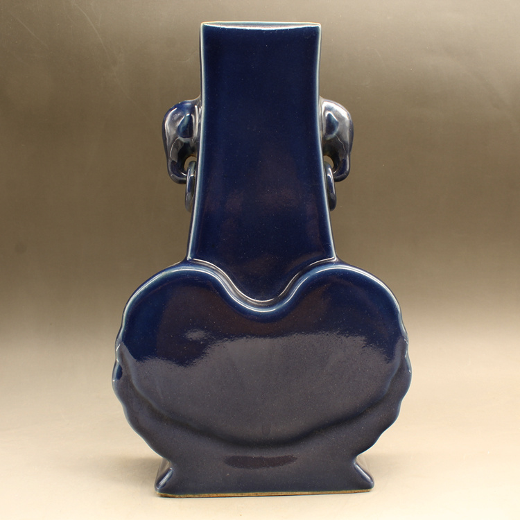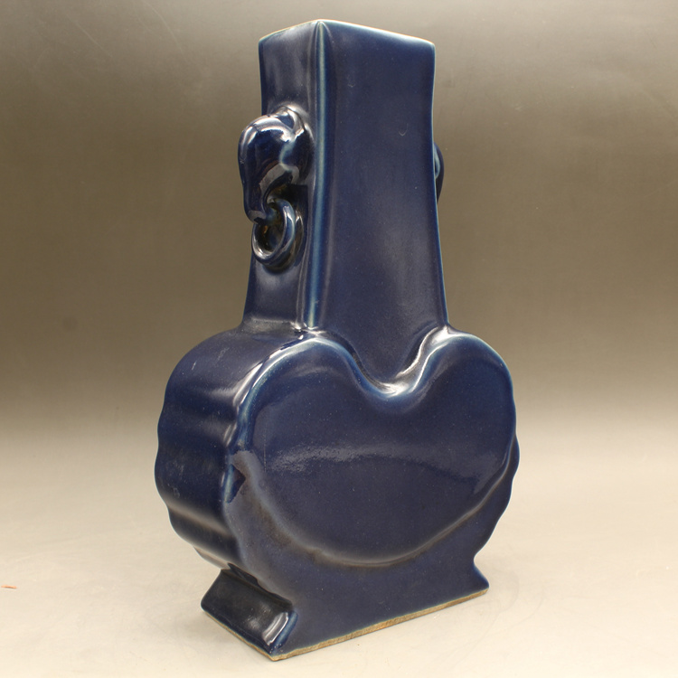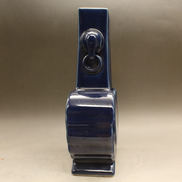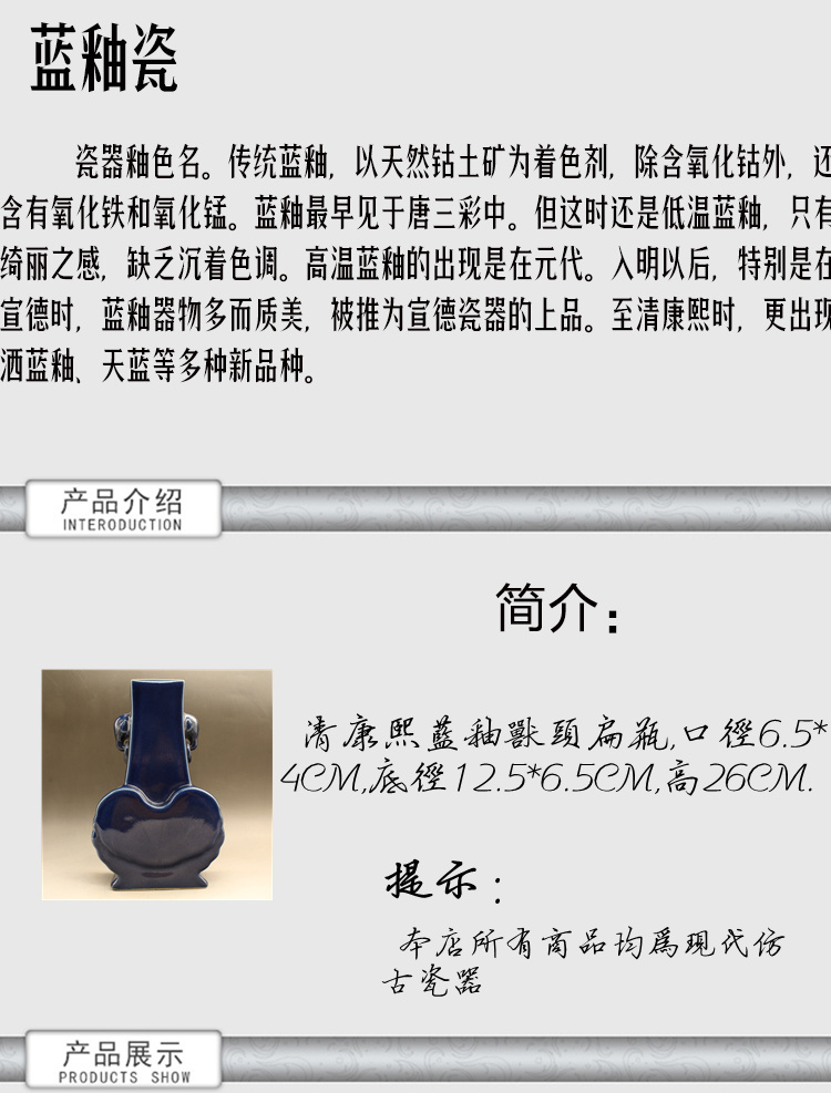 清康熙藍釉獸頭扁瓶古玩瓷器古董擺件仿古做舊瓷器收藏1入