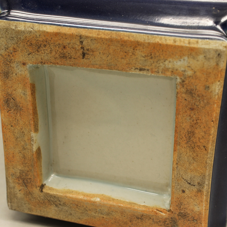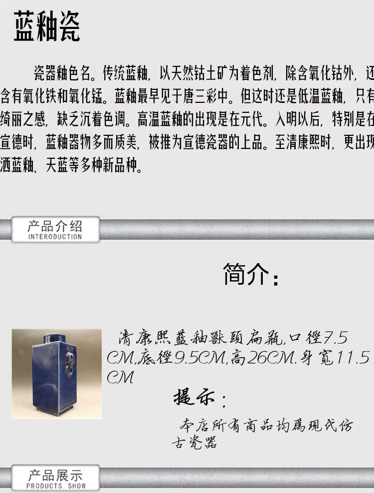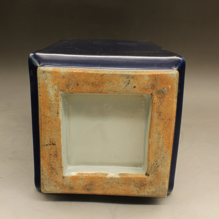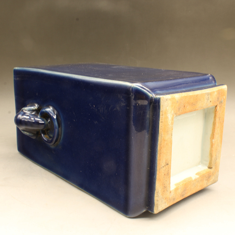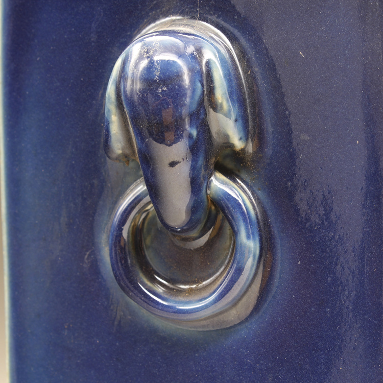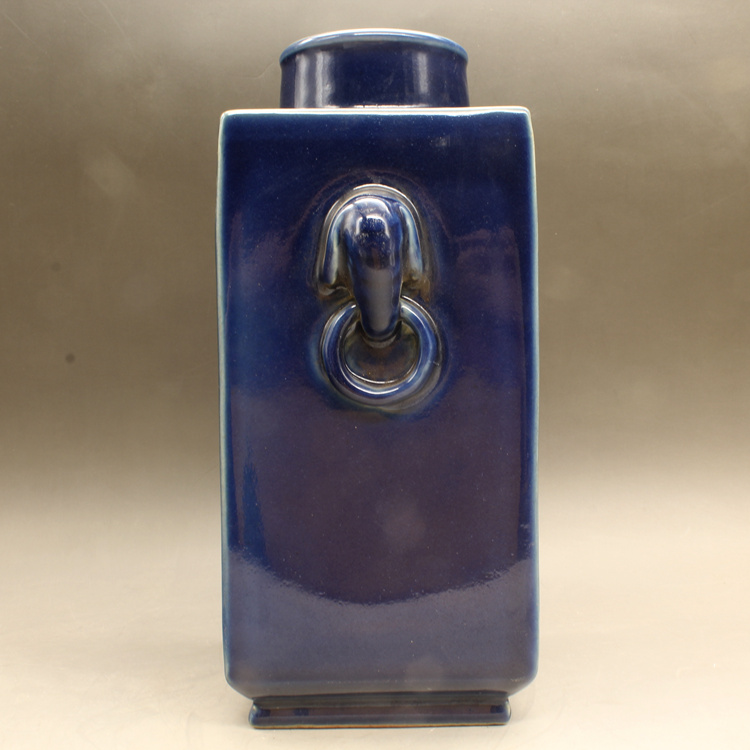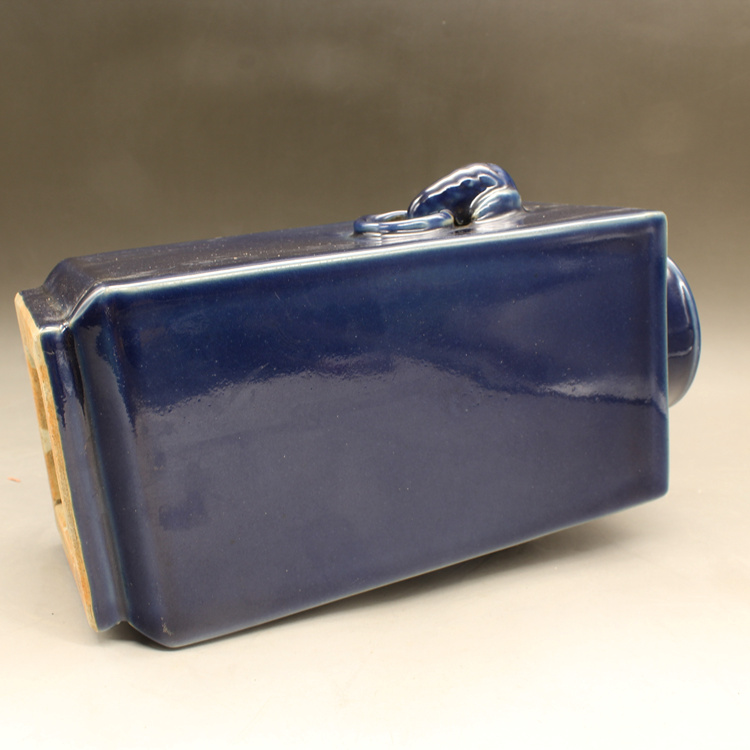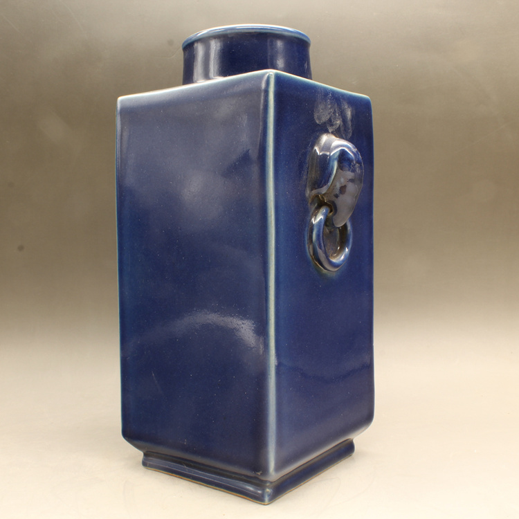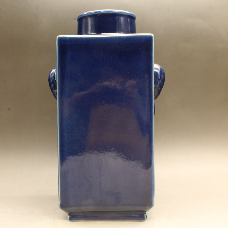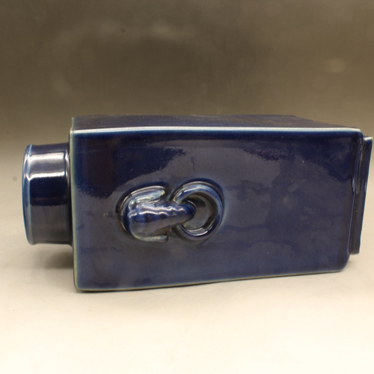 清康熙藍釉四方獸頭瓶古玩瓷器古董擺件仿古做舊瓷器收藏1入