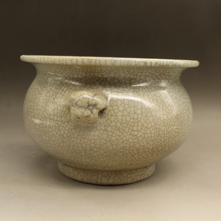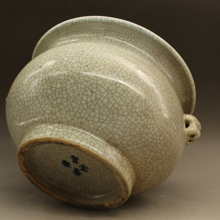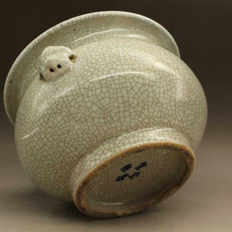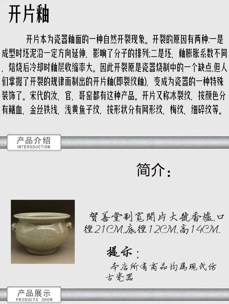 賀善堂款開片大號香爐古玩瓷器老貨古董老陶瓷仿古擺件收藏1入