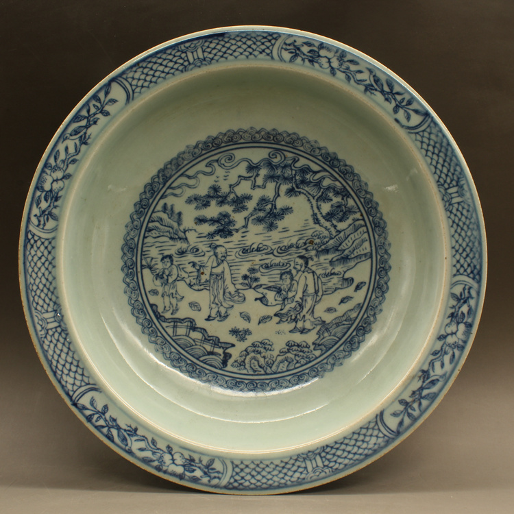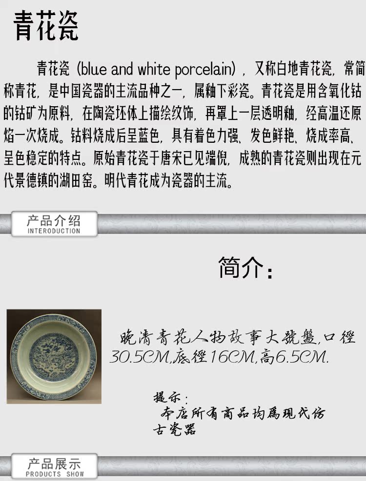 晚清青花人物故事大號瓷盤擺件古玩古董仿古瓷器擺件收藏藝術品1入