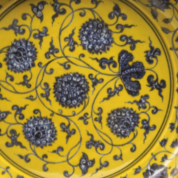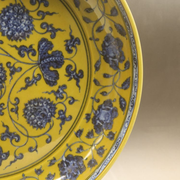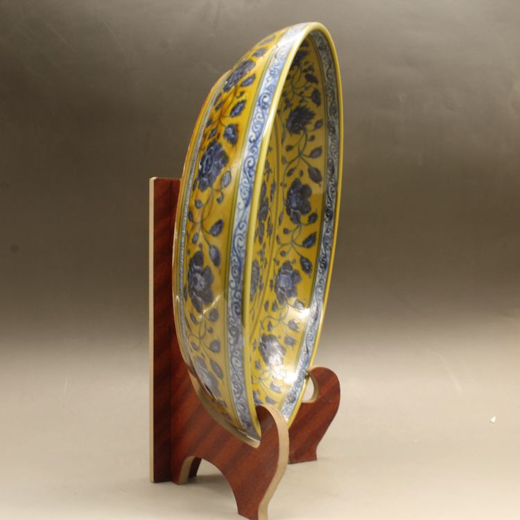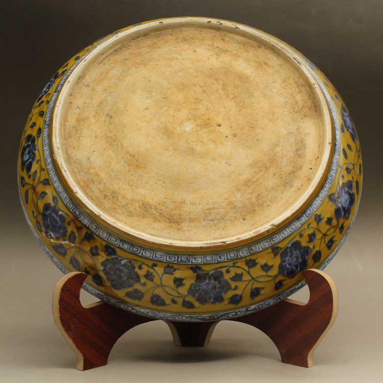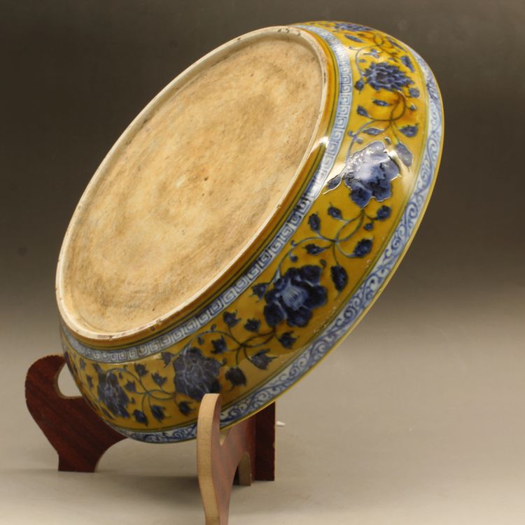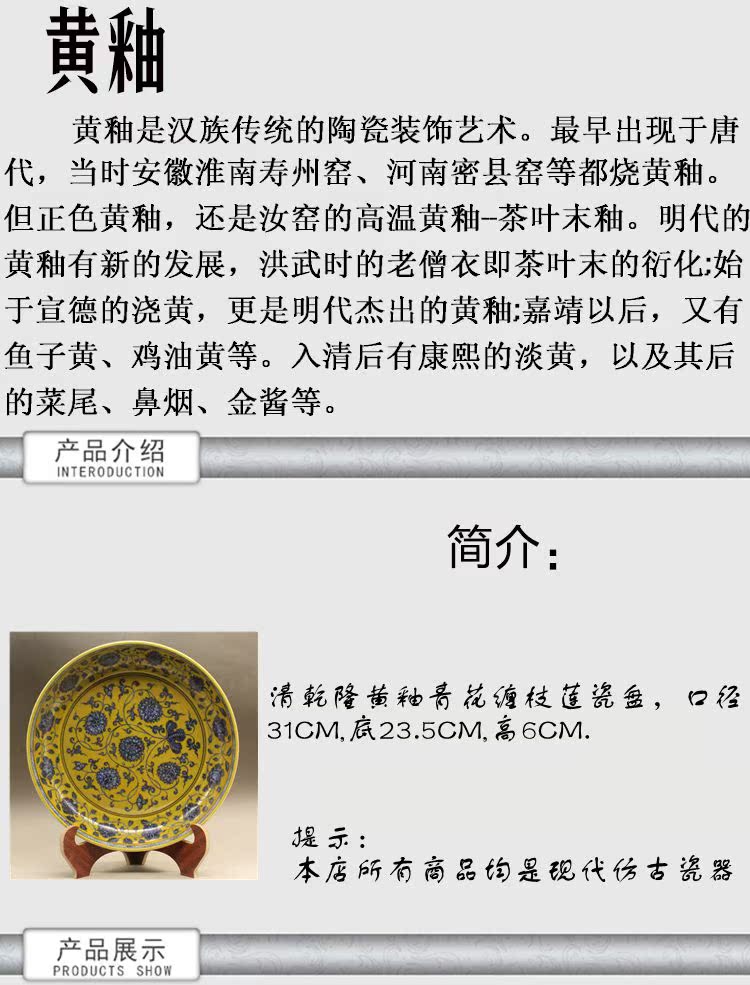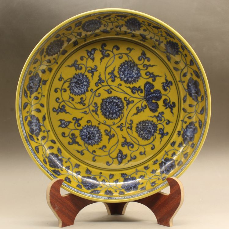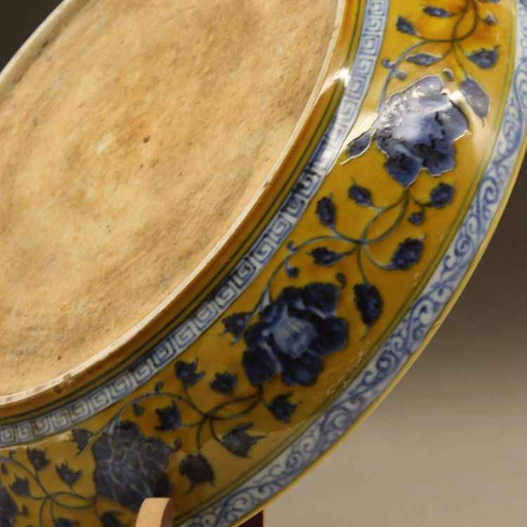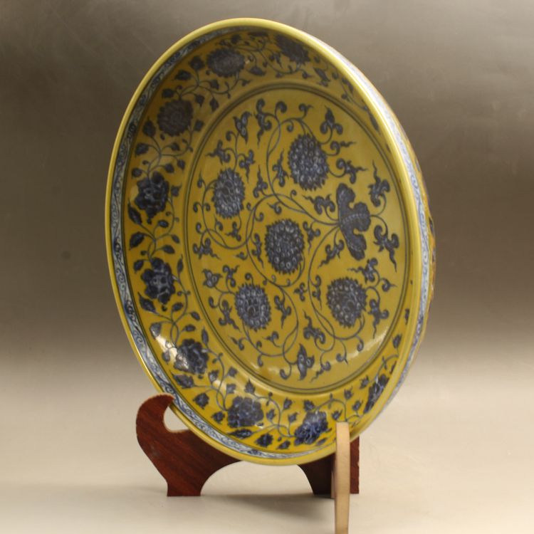 清乾隆黃釉青花纏枝蓮瓷盤 古玩古董 仿古瓷器 擺件收藏1入