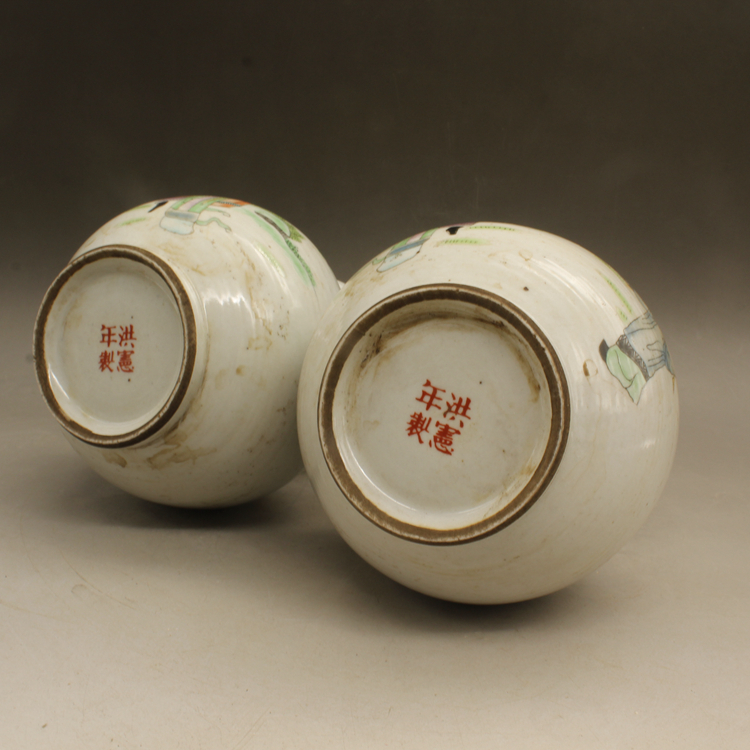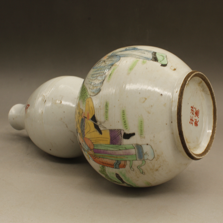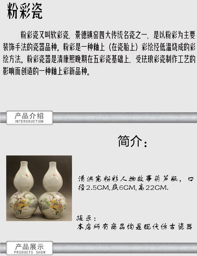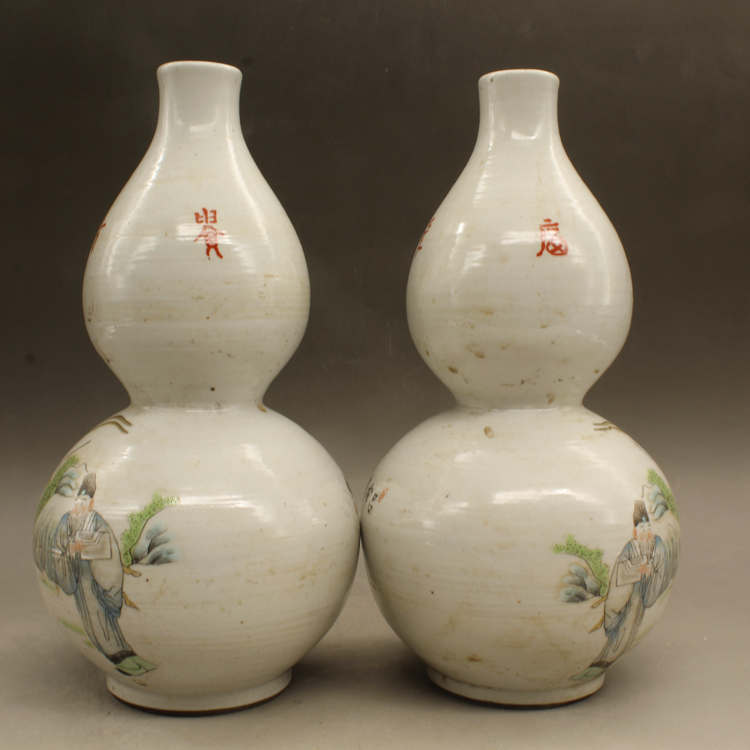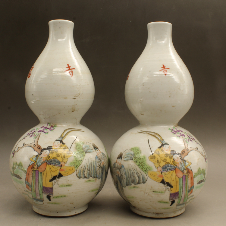 清宏憲粉彩人物故事葫蘆瓶(一對) 古玩瓷器 古董擺件 仿古瓷1入