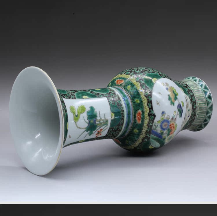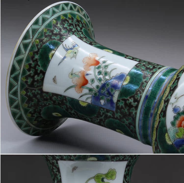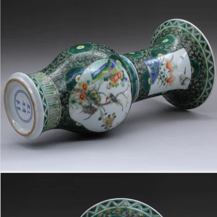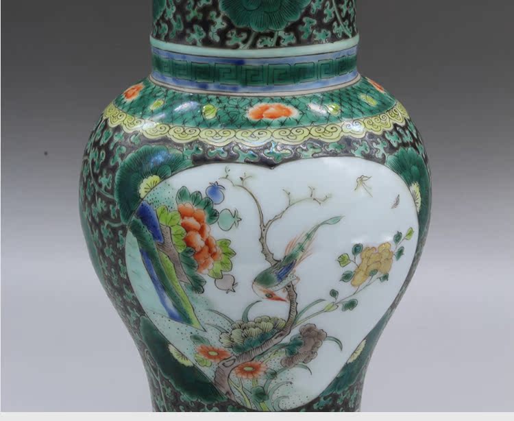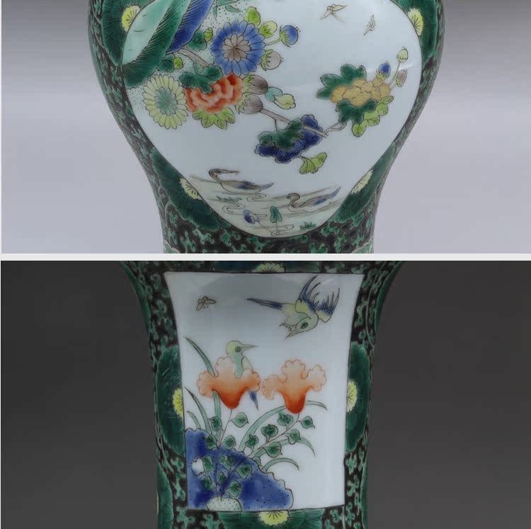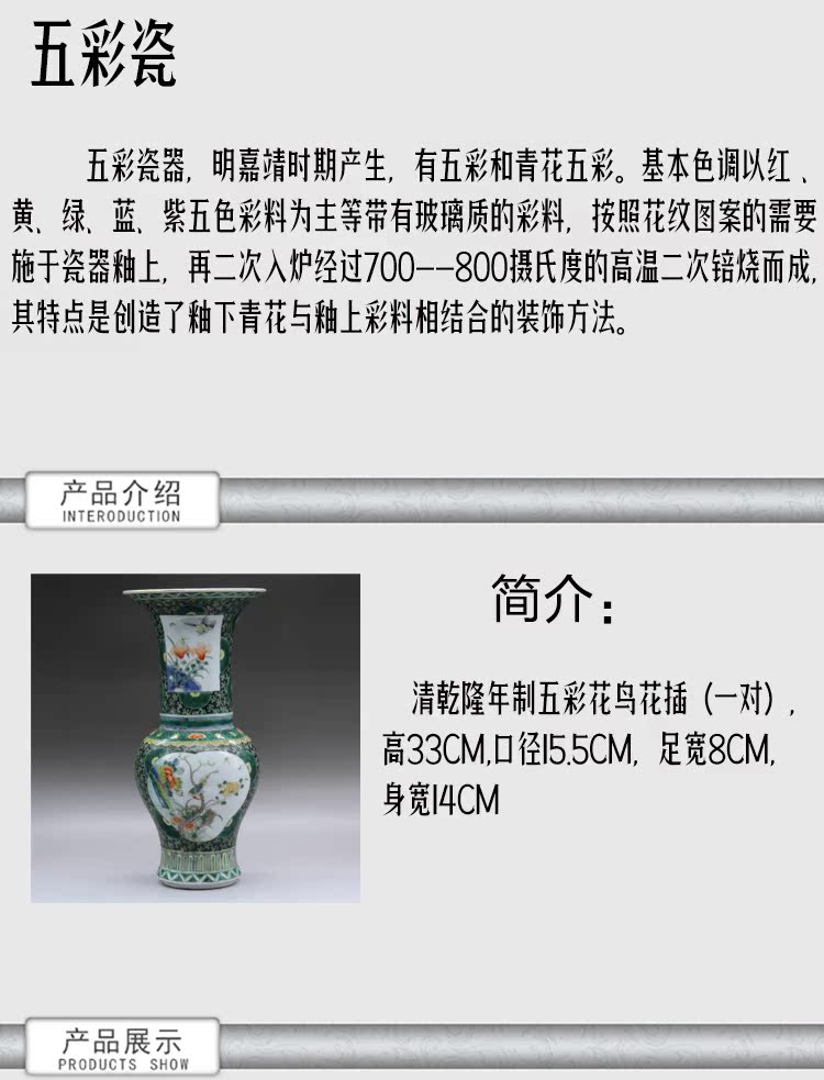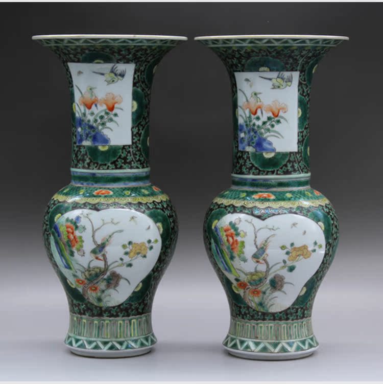 清康熙五彩花鳥花插(一對)古玩瓷器老貨古董老陶瓷舊貨擺件收藏1入