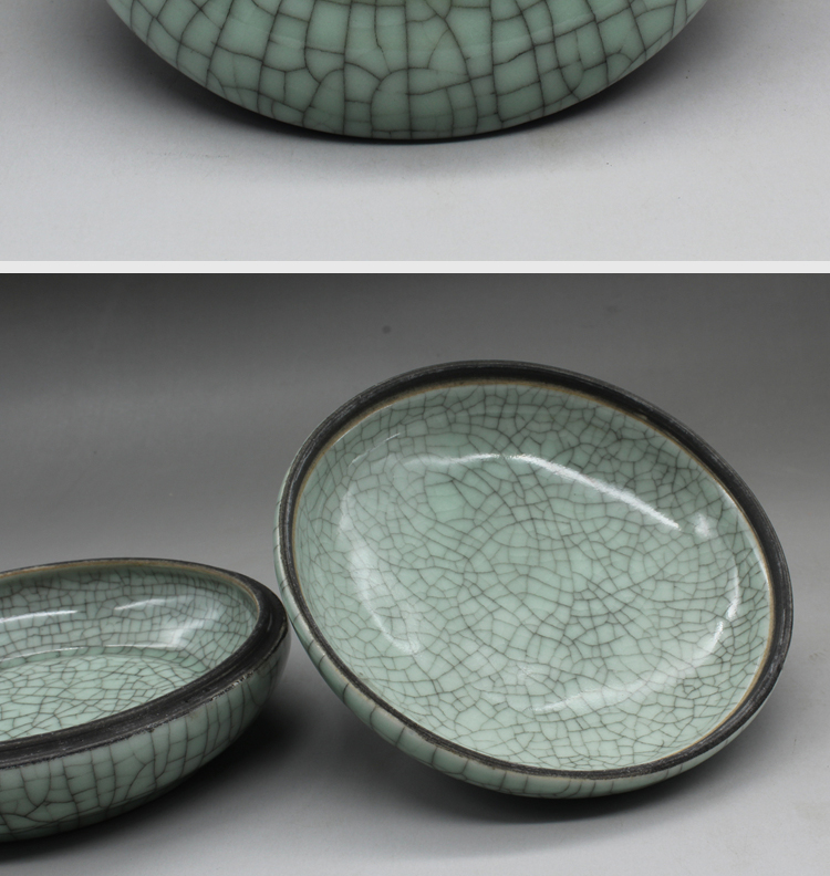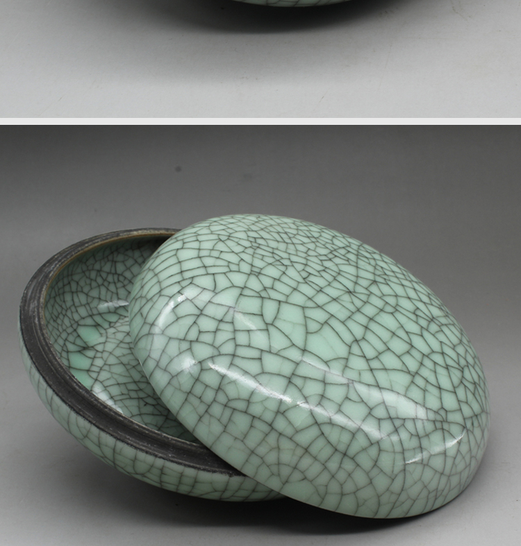 古董老陶瓷宋哥窯開片印泥盒古玩瓷器仿古瓷器擺件收藏1入
