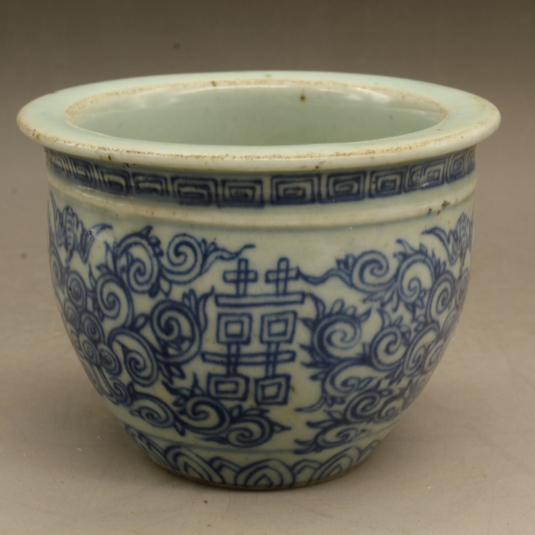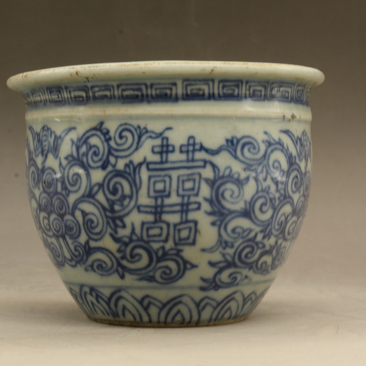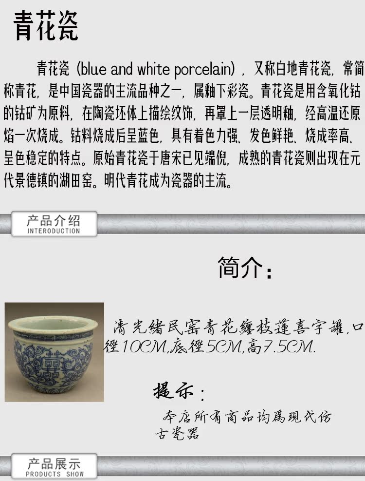 清光緒民窯青花喜字罐仿古瓷器古玩瓷器古董老陶瓷做舊擺件收藏1入
