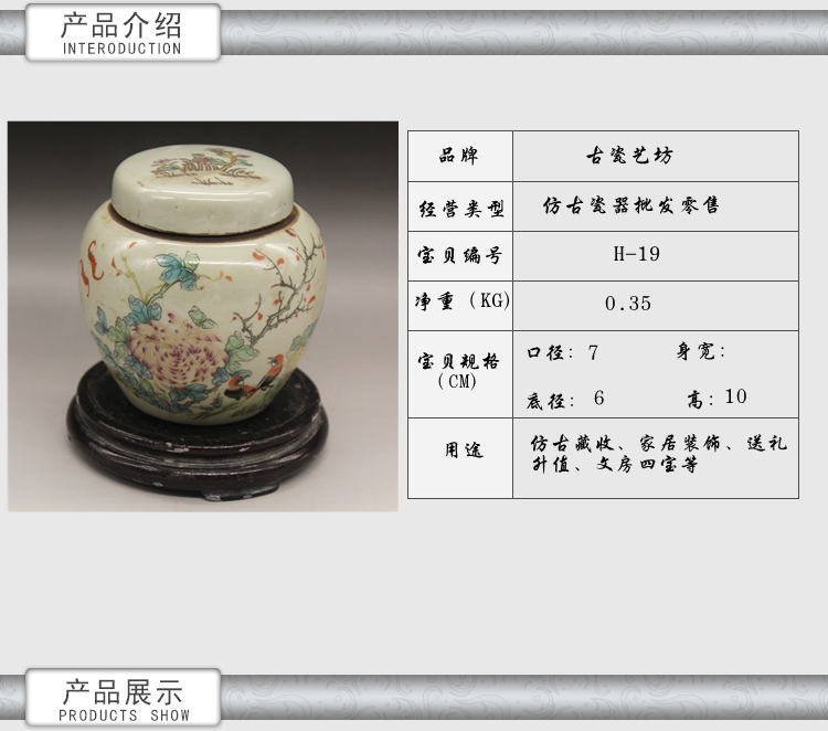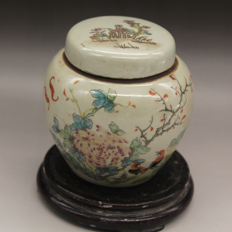 清同治粉彩花鳥描金茶葉罐古玩瓷器老貨古董擺件廠貨做舊1入