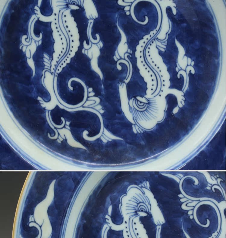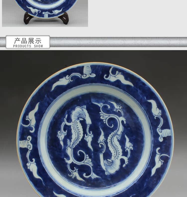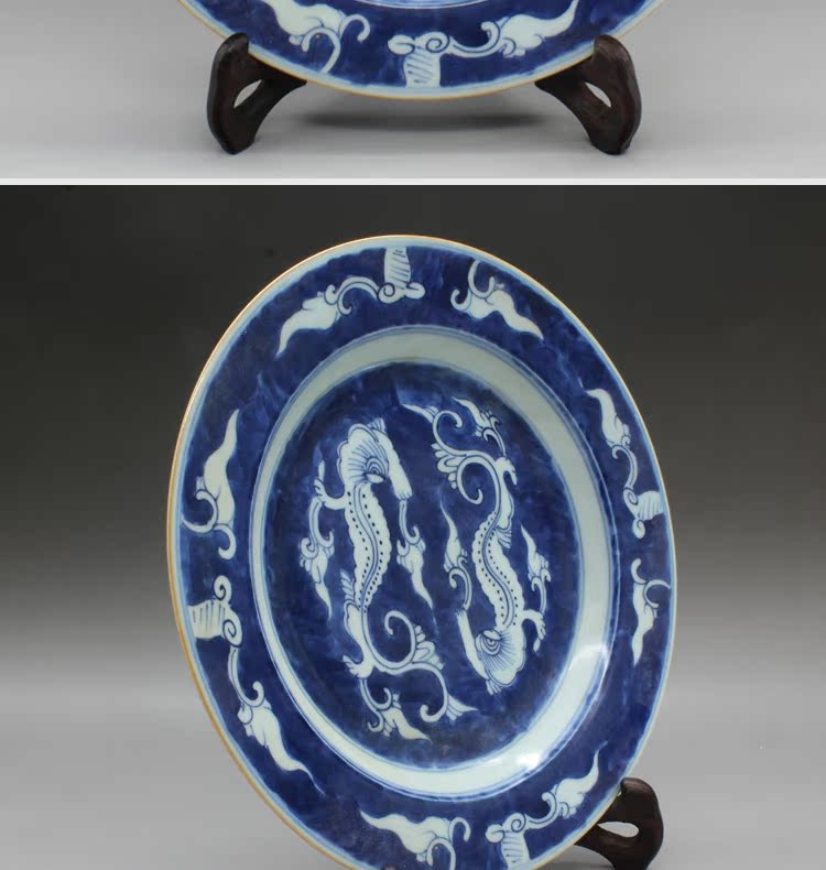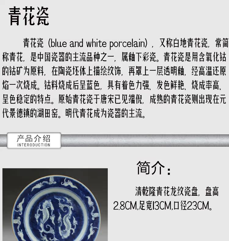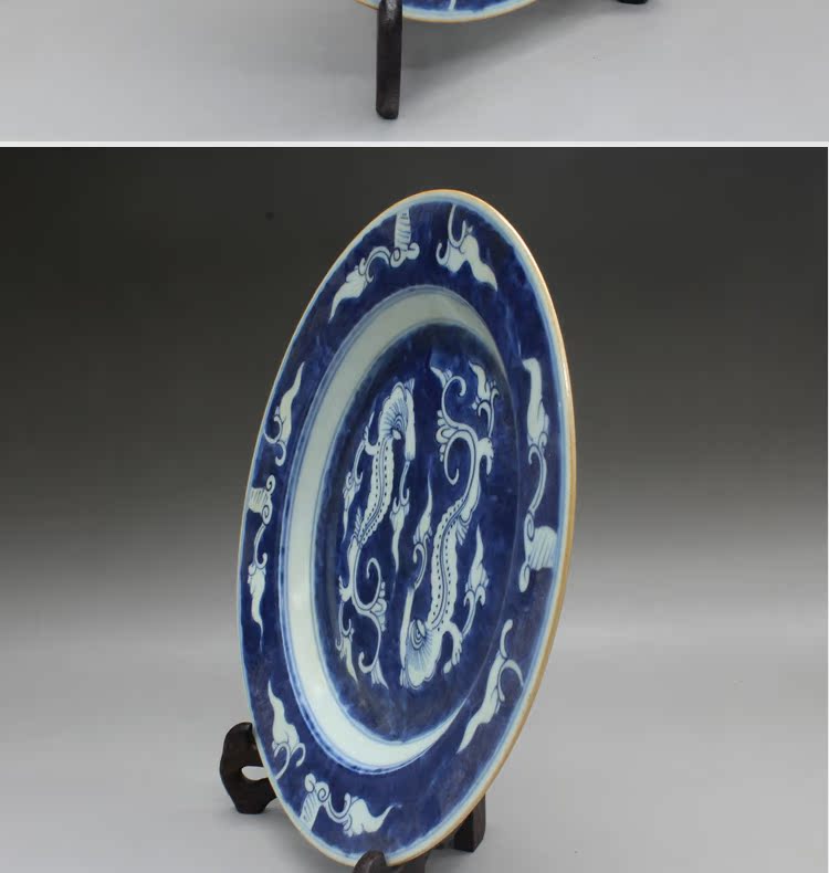 清乾隆青花龍紋瓷盤古玩古董瓷器老貨老陶瓷舊貨老物件擺件收藏1入