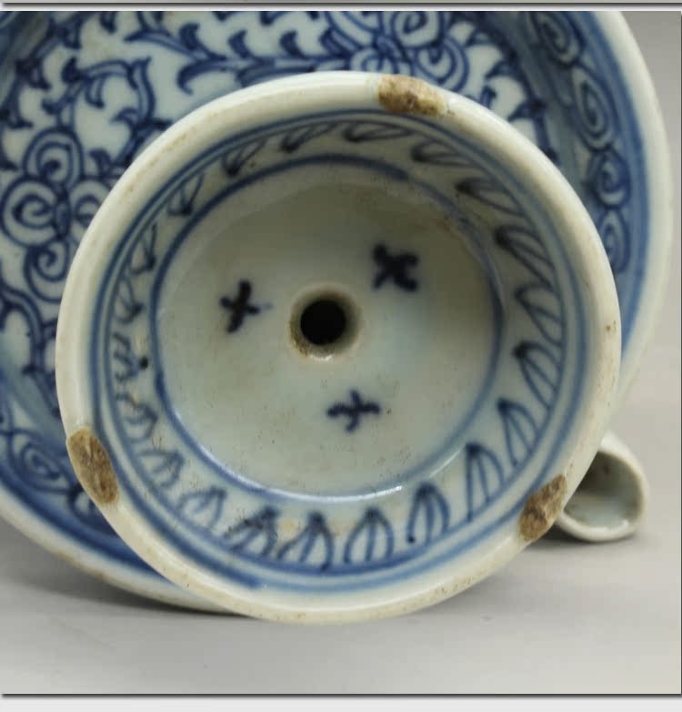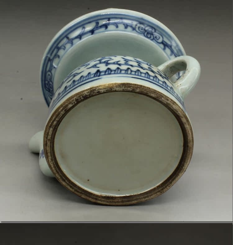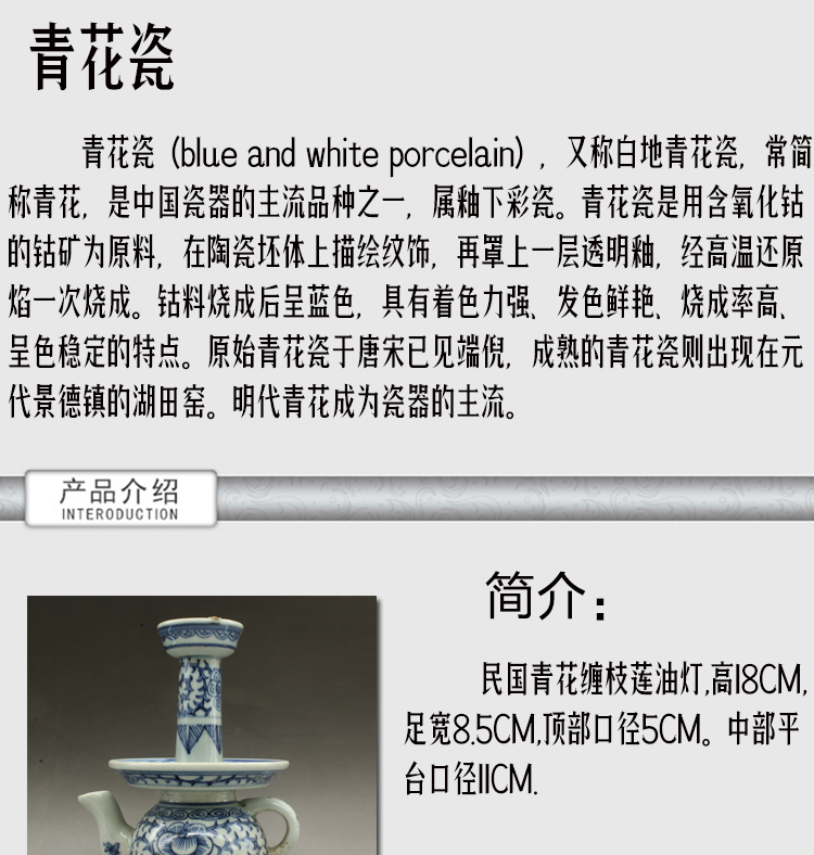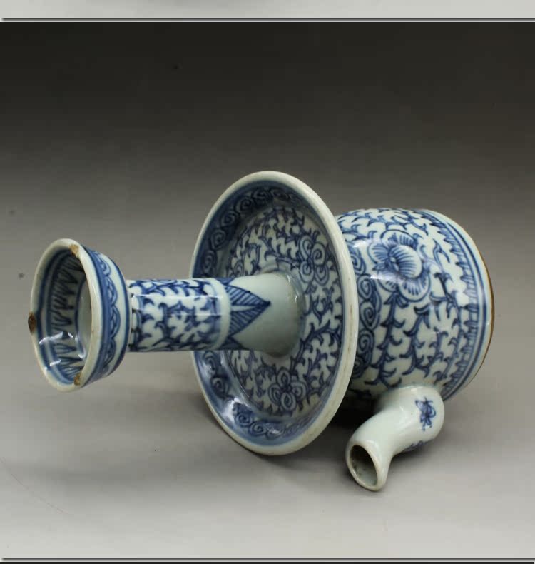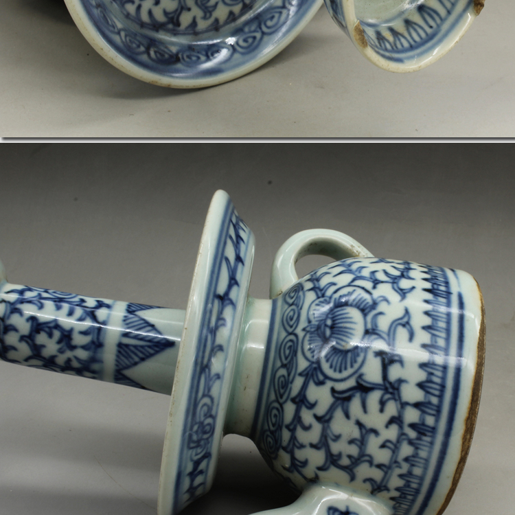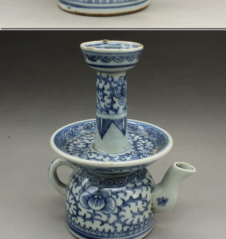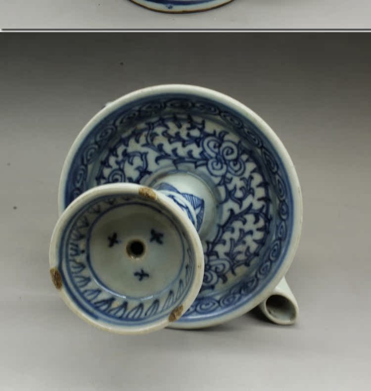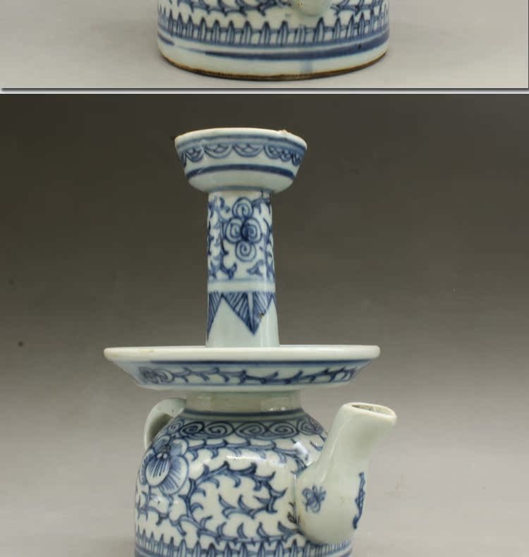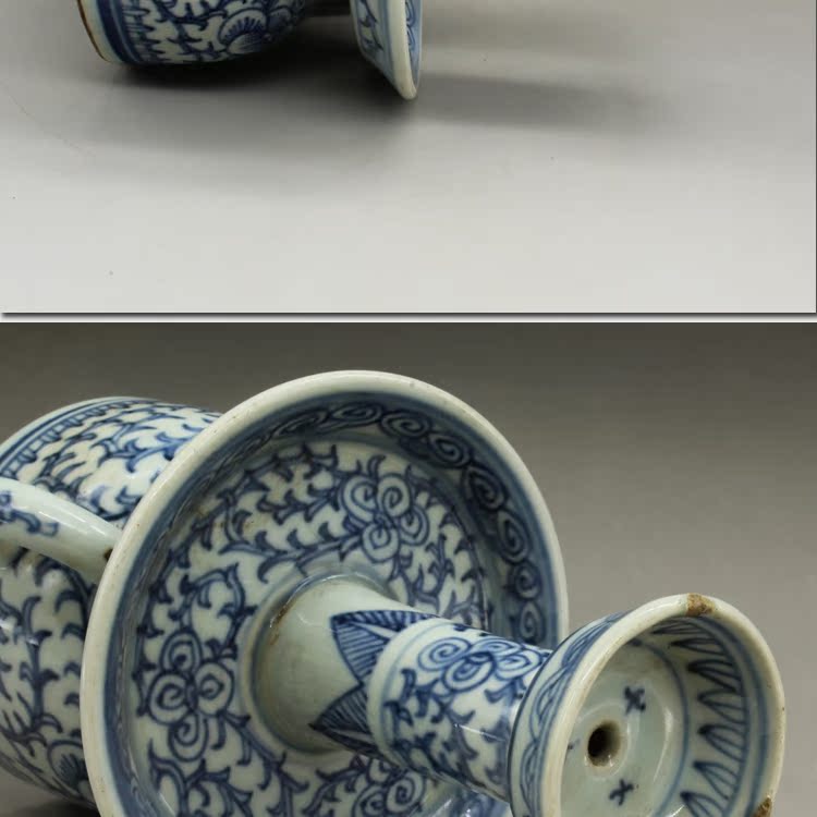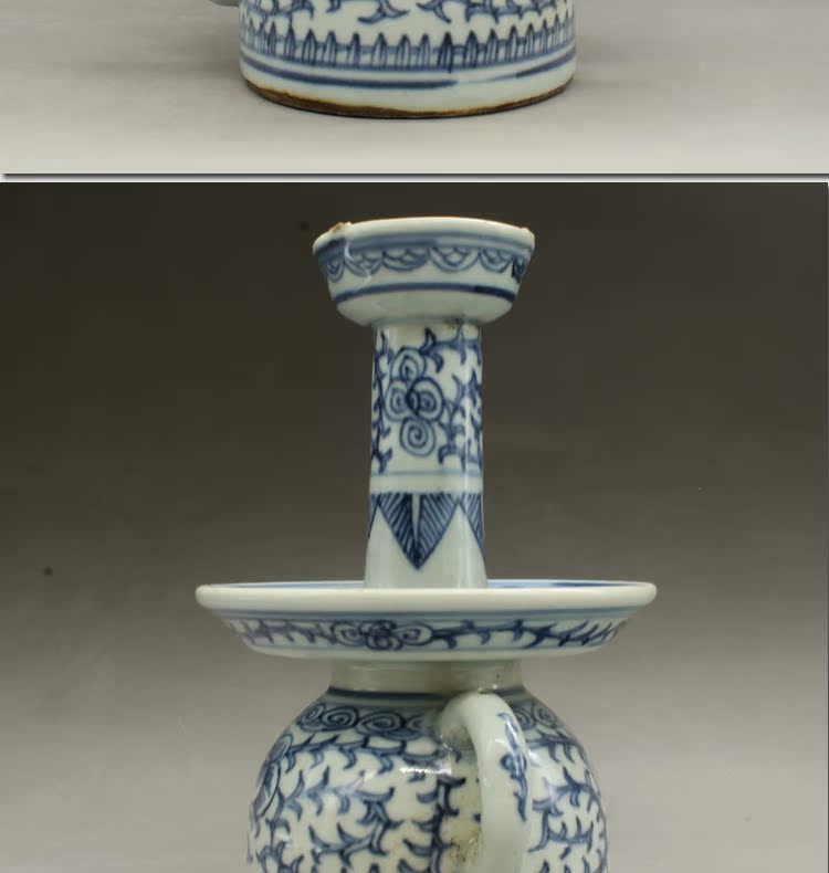 古董老陶瓷清光緒青花纏枝蓮油燈古玩瓷器老貨老物件仿古擺件收藏1入