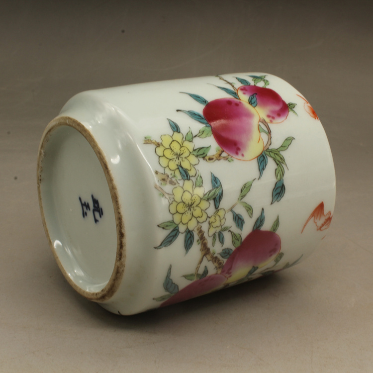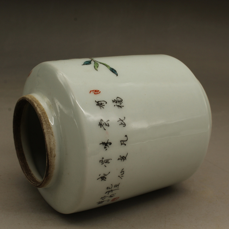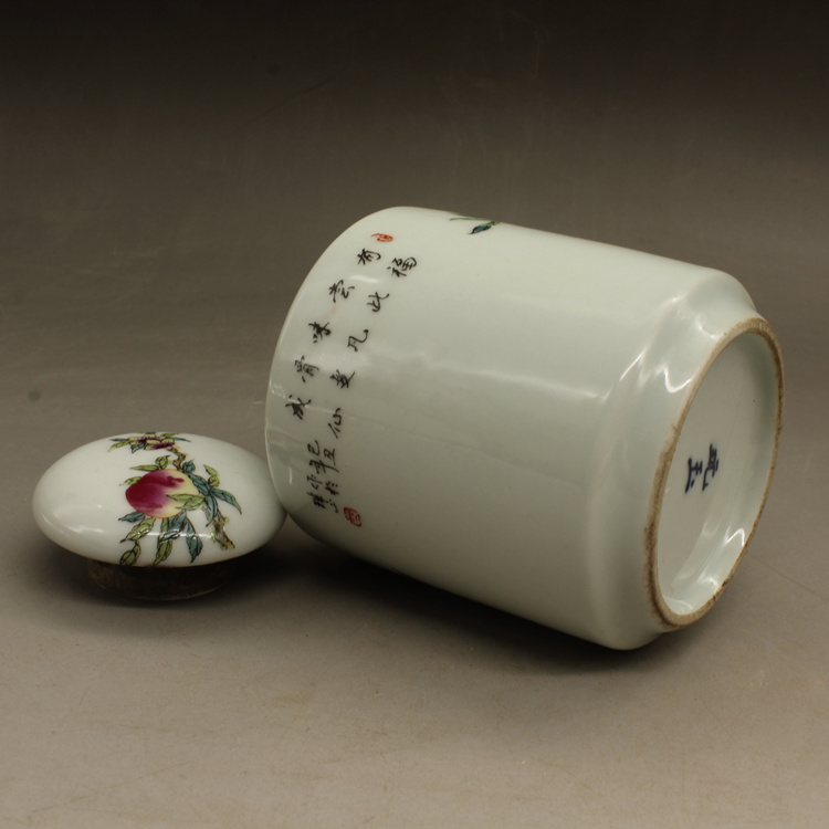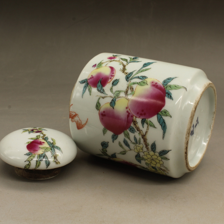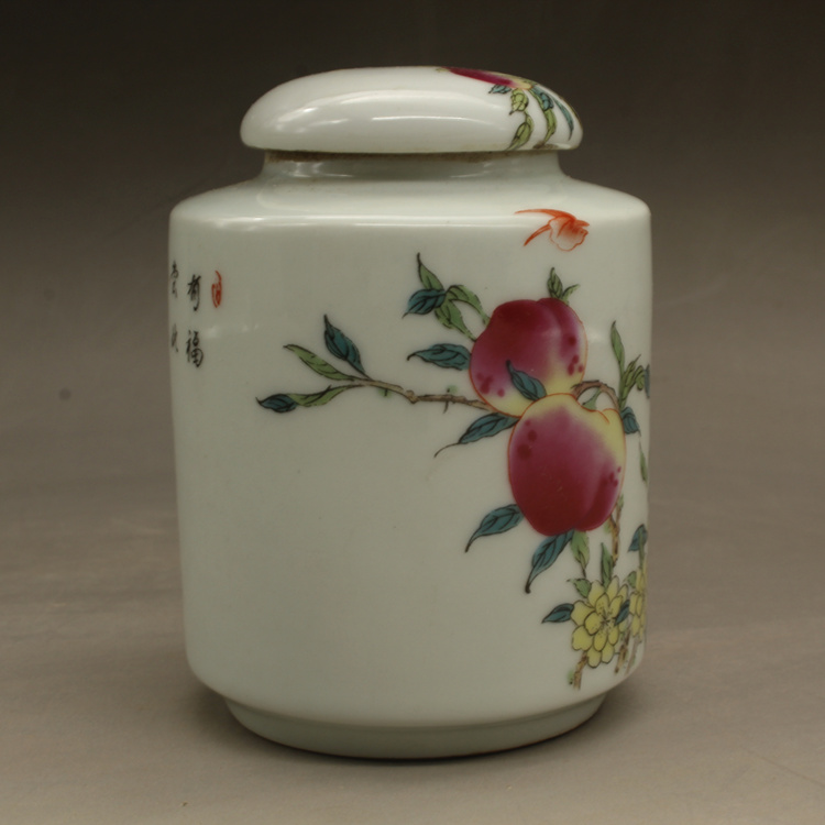 玩玉款粉彩壽桃紋小茶葉罐古玩古董瓷器仿古瓷擺件收藏1入