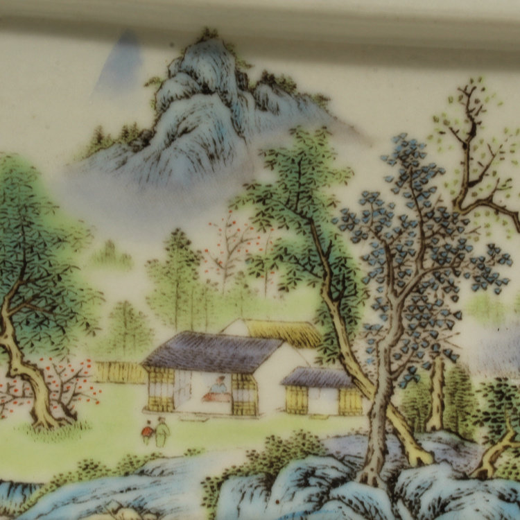 民國粉彩山水四方多肉菖蒲花盆古董古玩瓷器仿古擺件收藏品1入