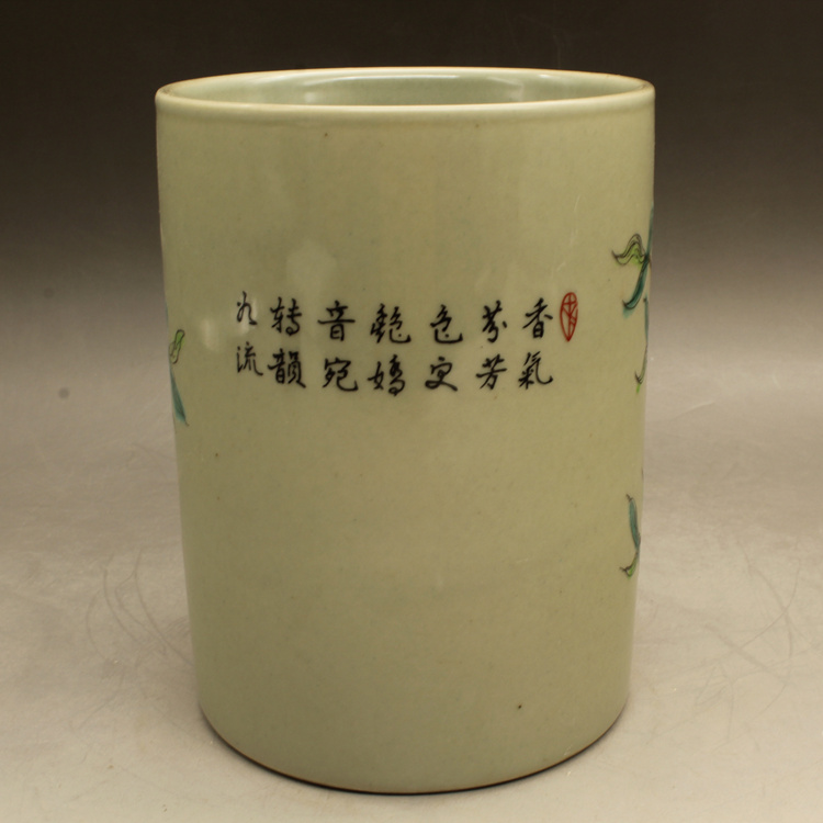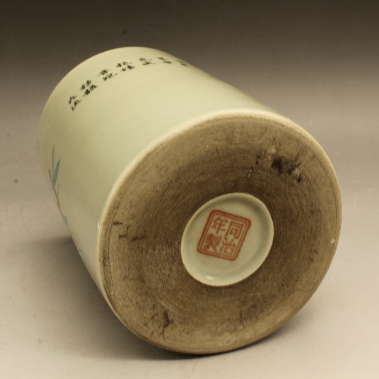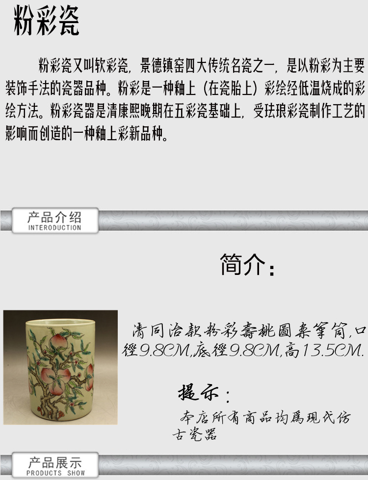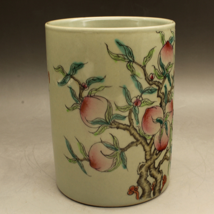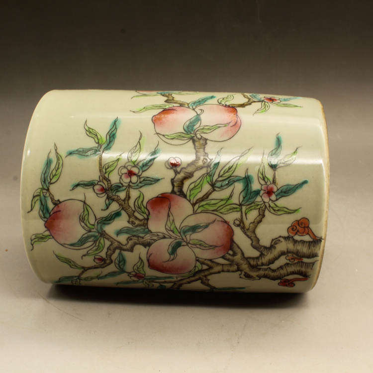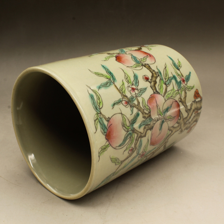 清同治粉彩壽桃筆筒古玩古董老陶瓷仿古瓷器擺件送禮收藏1入