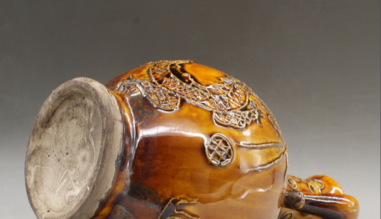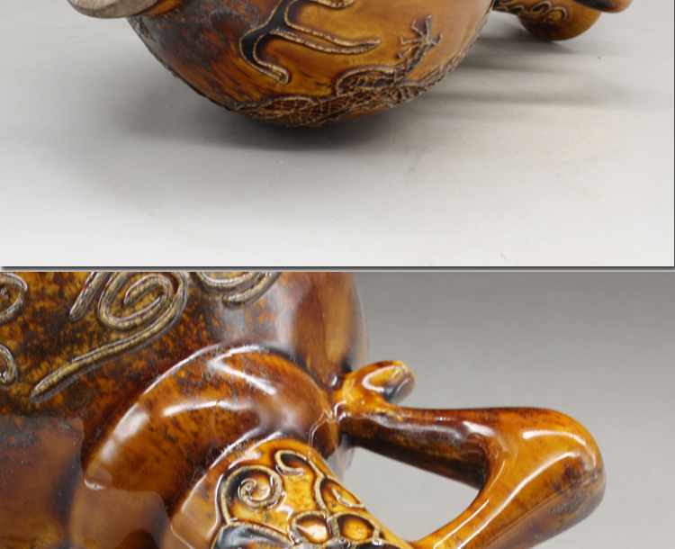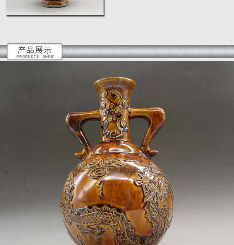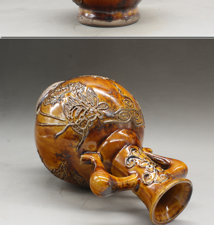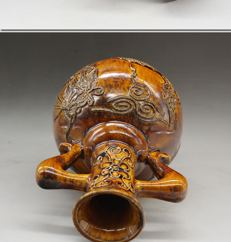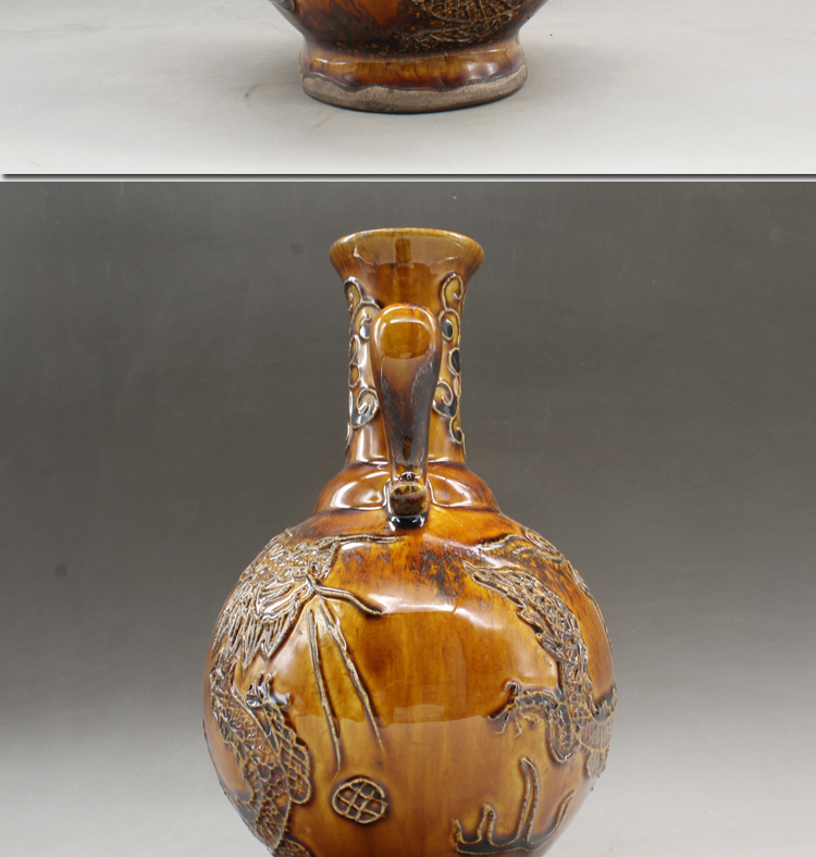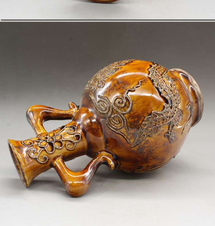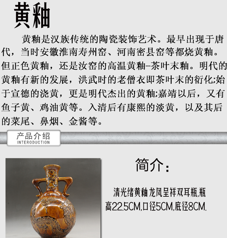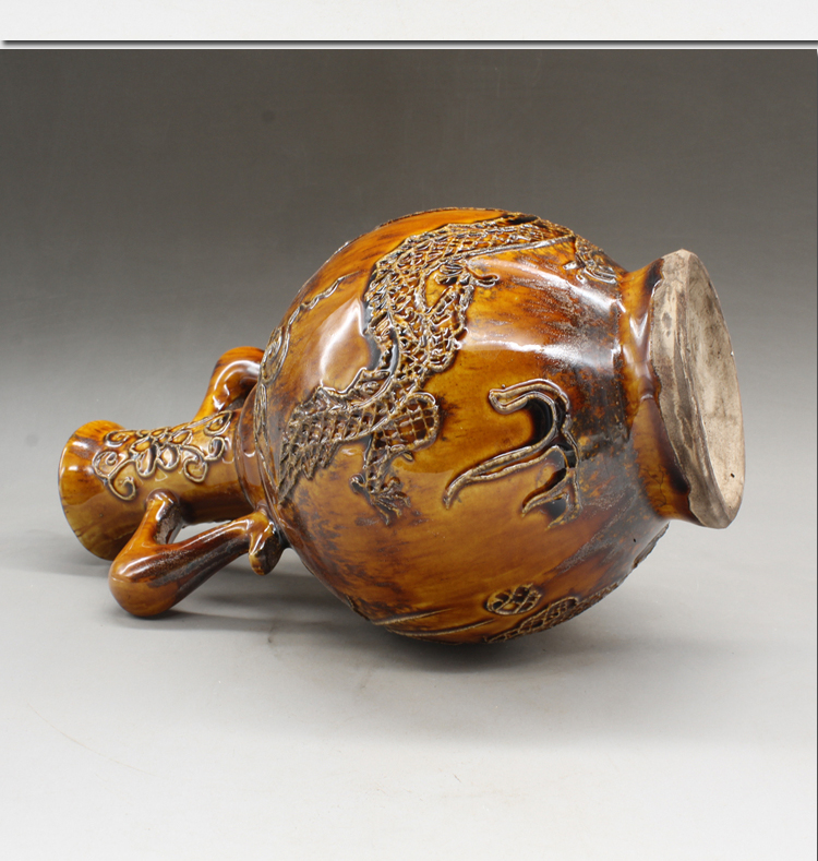 清黃釉龍鳳呈祥雙耳瓶古玩瓷器老貨古董仿古做舊擺件老物件收藏1入