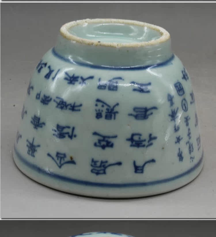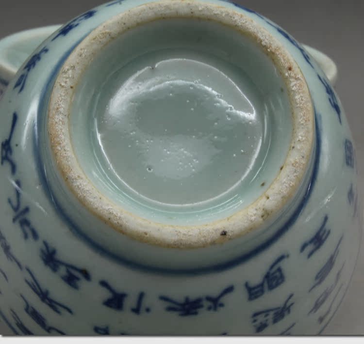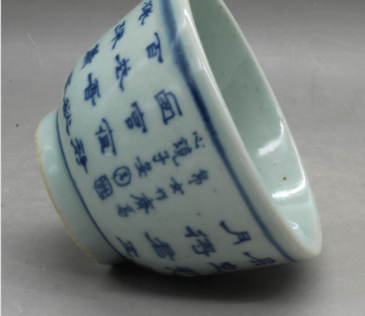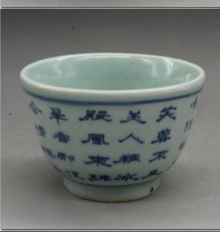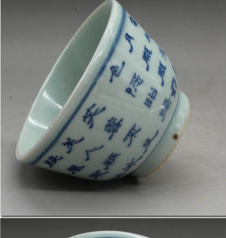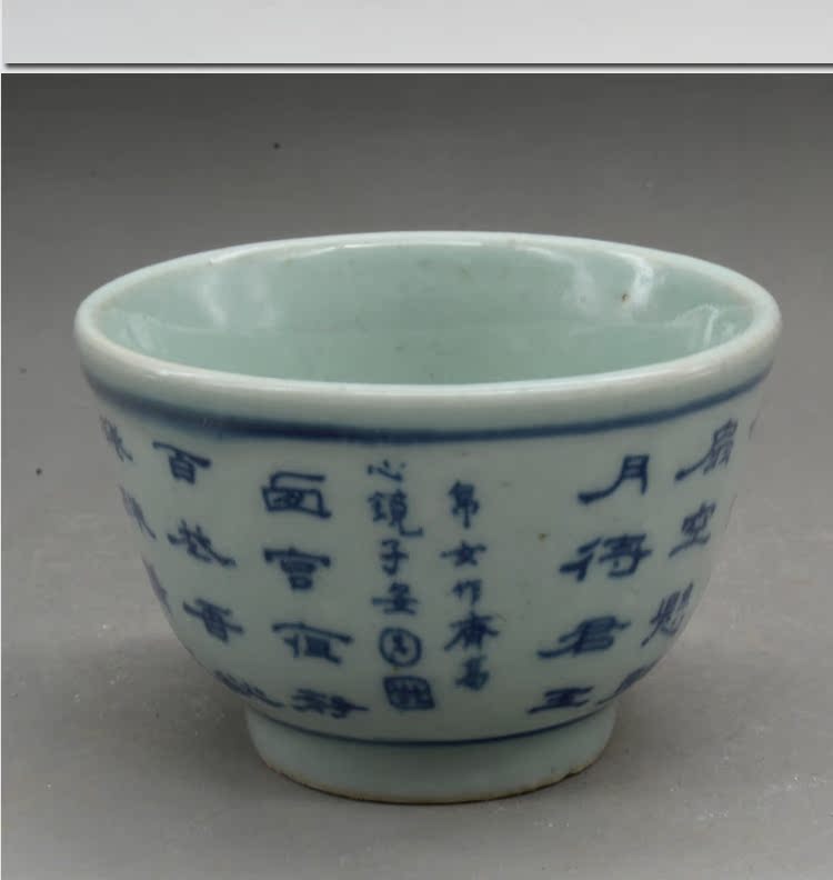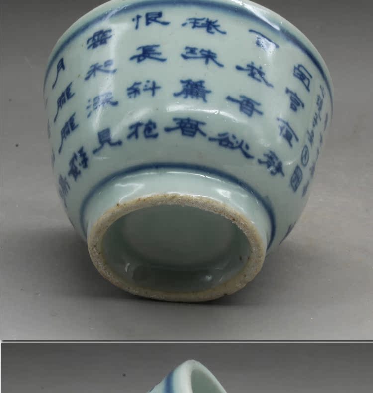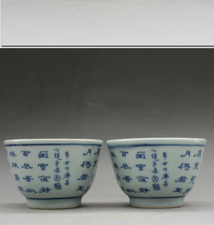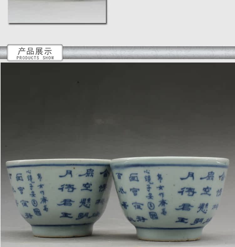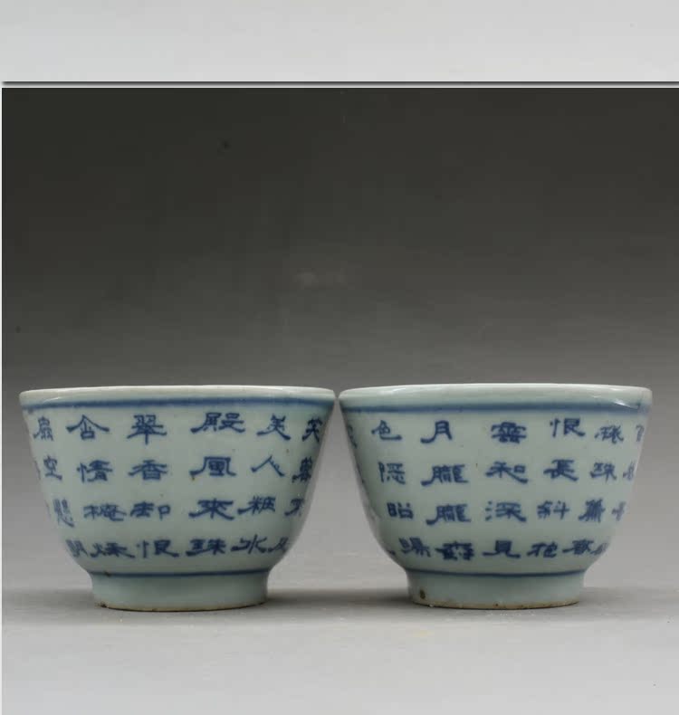 清光緒青花詩文大號茶杯茶碗(一對)古玩瓷器古董老陶瓷擺件1入