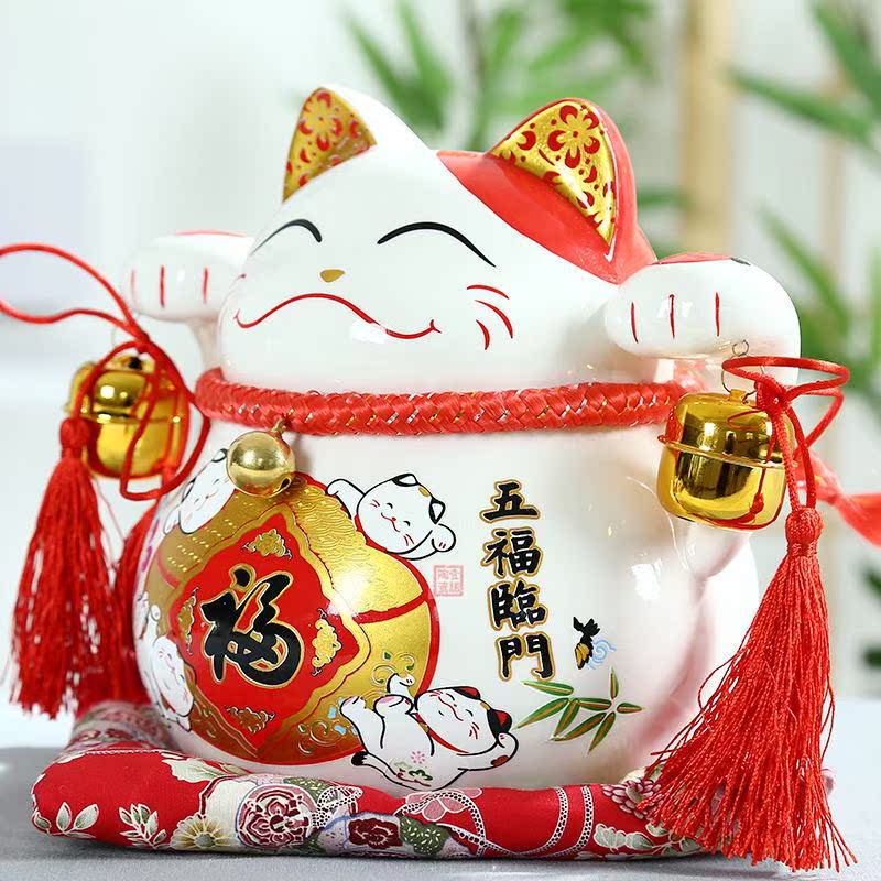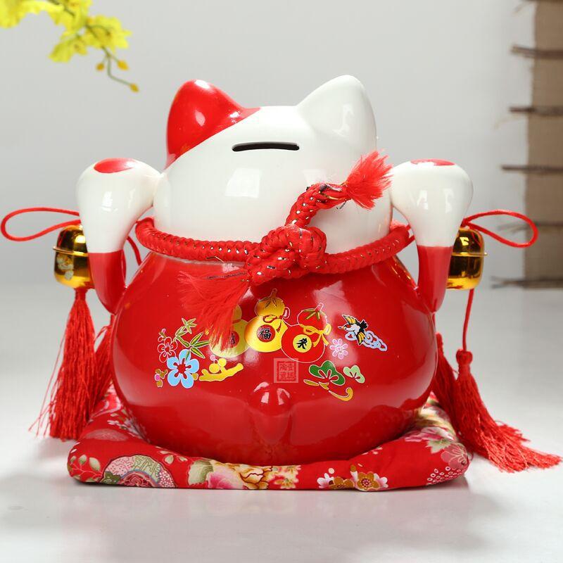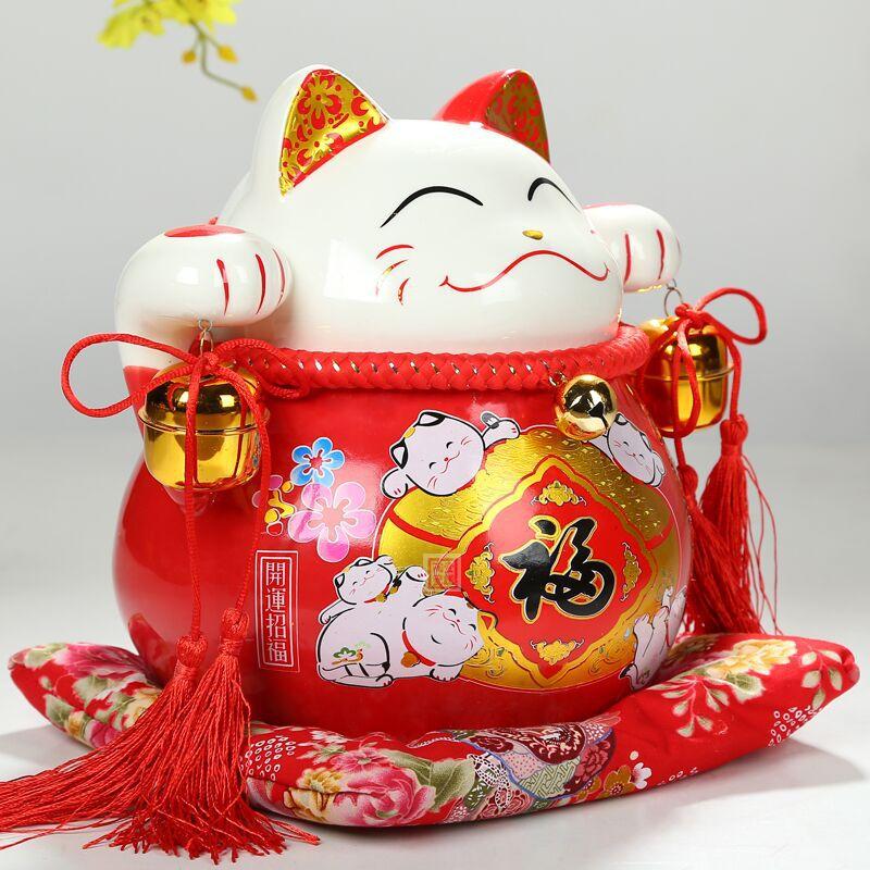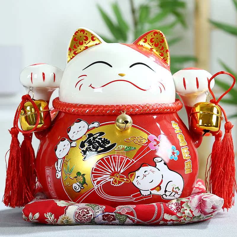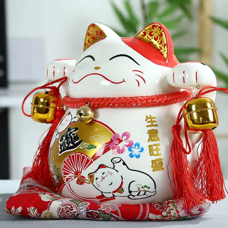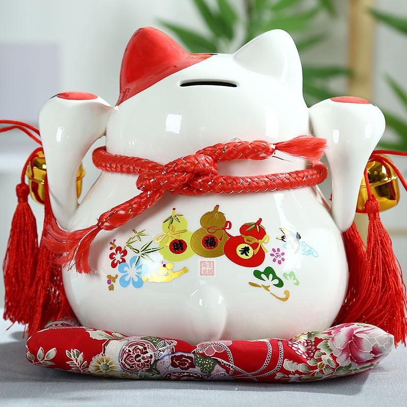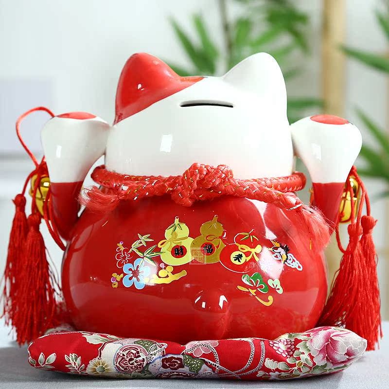 大號招財貓存錢罐陶瓷儲錢儲蓄罐創意可愛擺件1入
