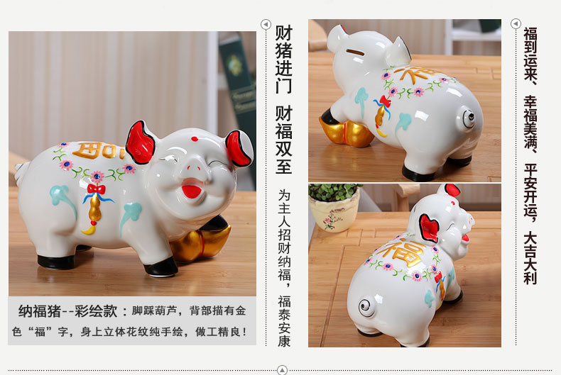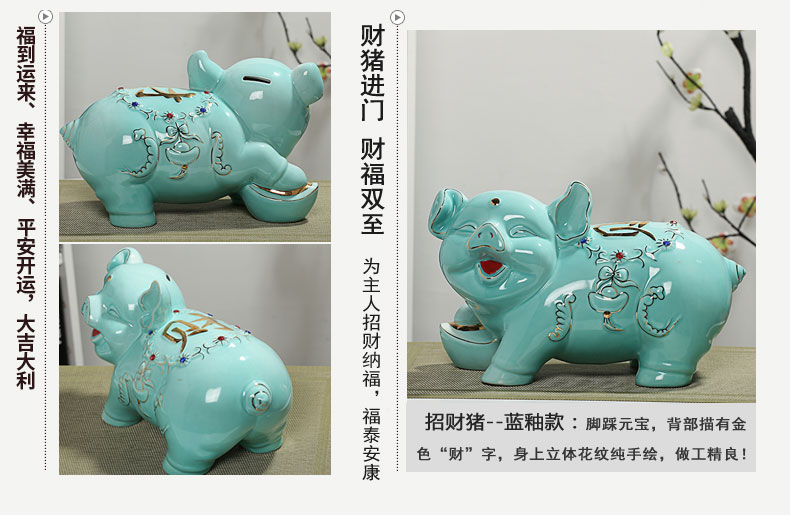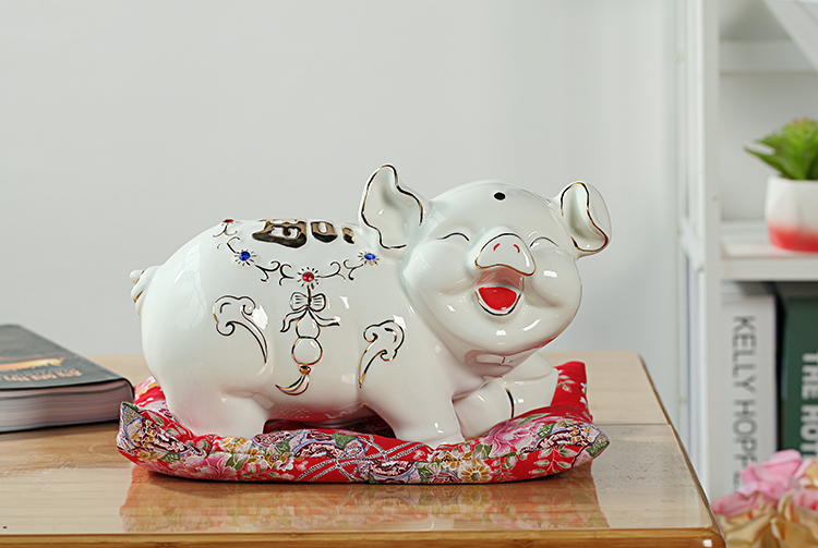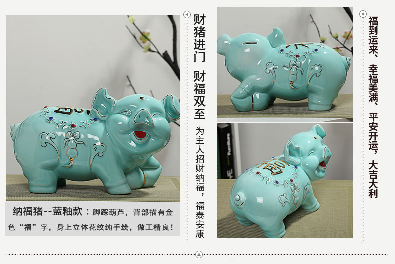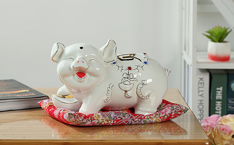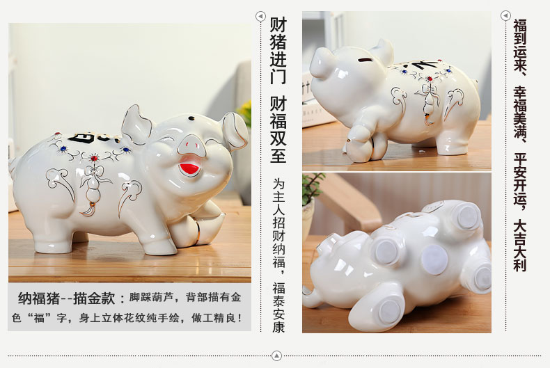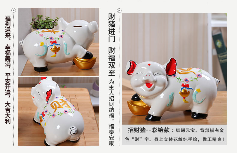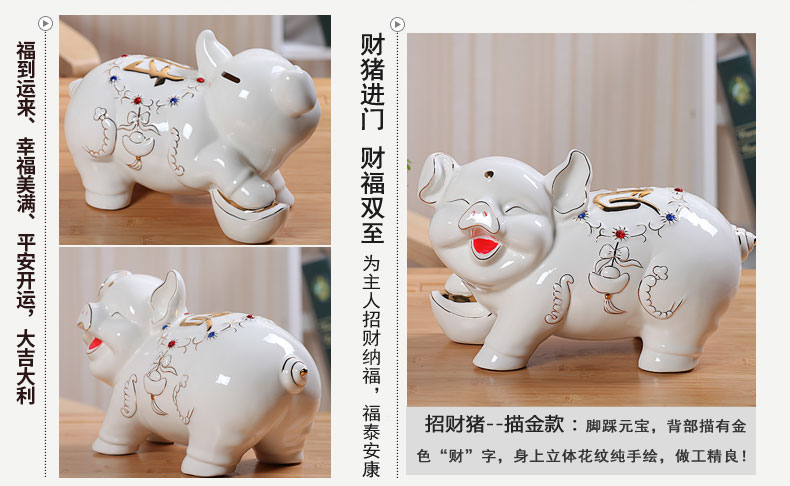 陶瓷儲蓄罐大號存錢罐可愛招財金豬儲錢罐創意擺件店鋪1入