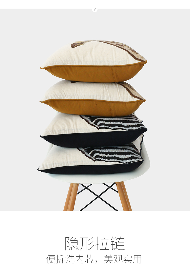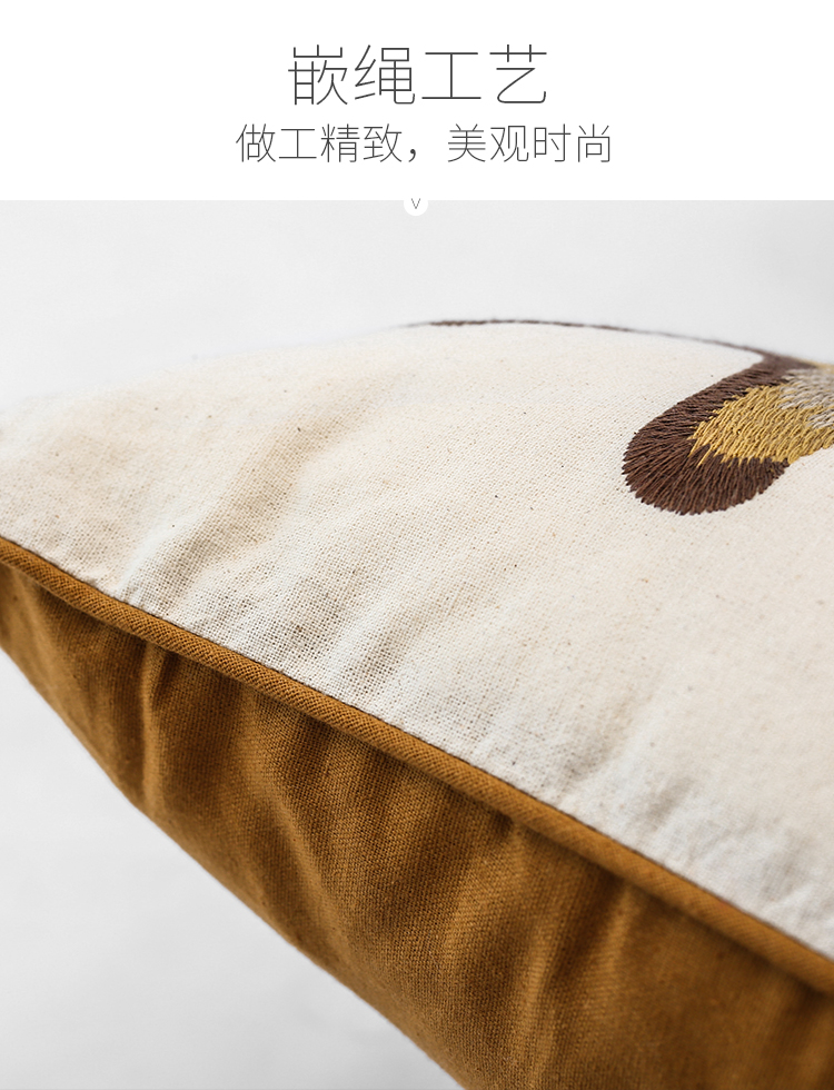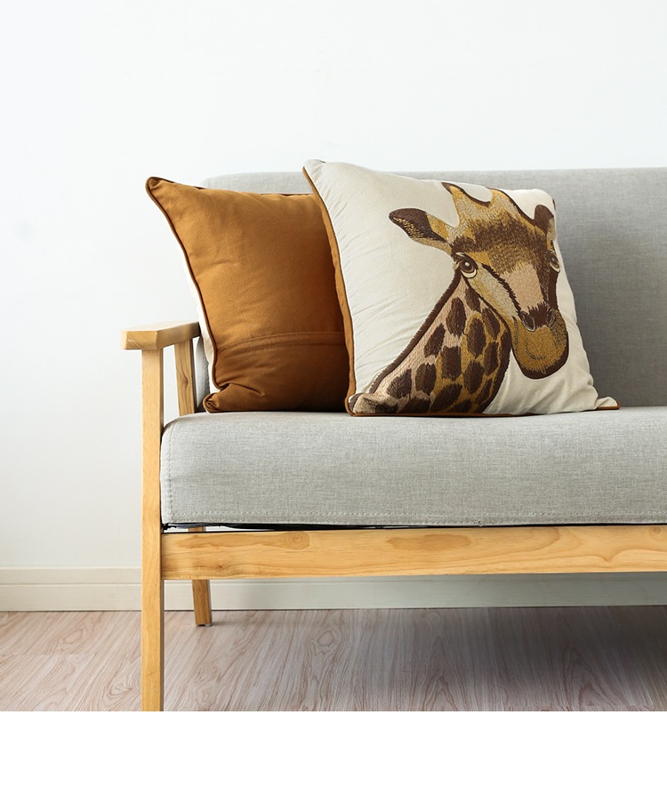 中式抱枕刺繡辦公室靠墊裝飾抱枕沙發汽車腰枕靠墊長頸鹿1入