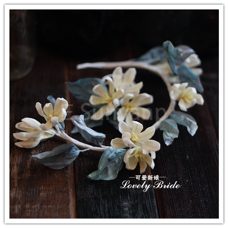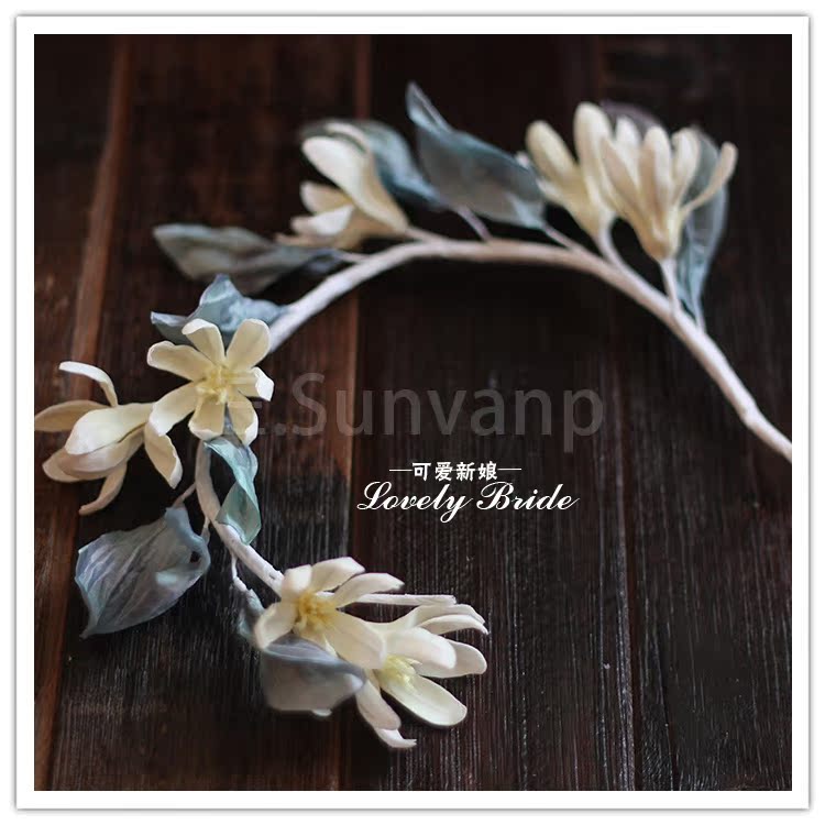優尚梵品森系藝術造花系列新娘頭飾頭花白蘭花套裝組合