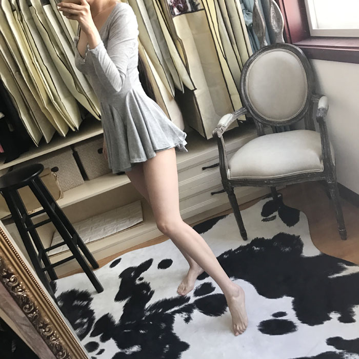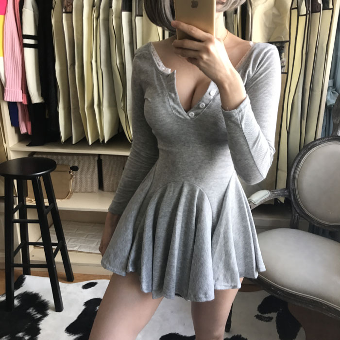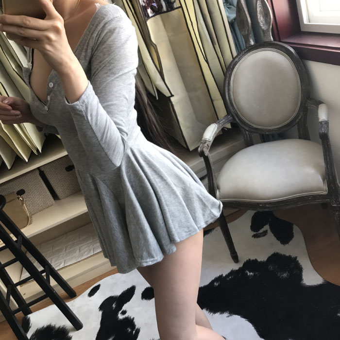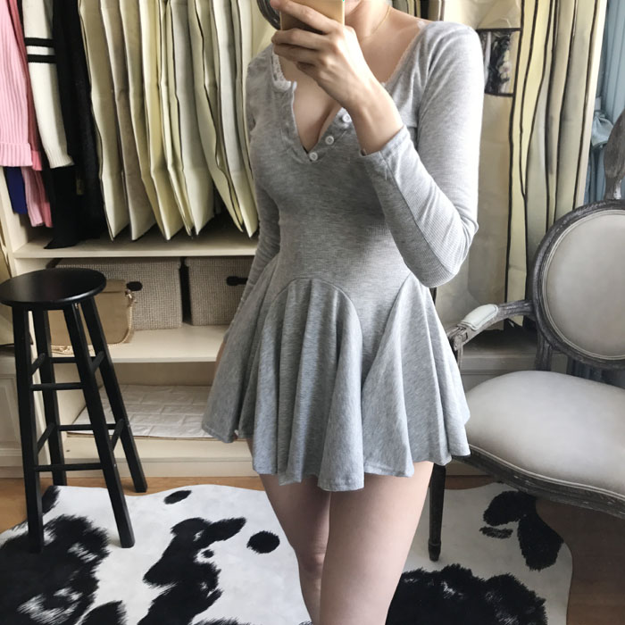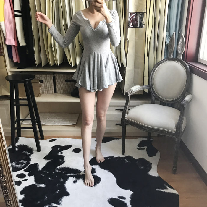 終于出長袖款的了 可以穿著它去挑芭蕾了 超級大裙擺 裙擺特別大 所以特別顯腰細 顯的屁股特別翹 注意裙子特別短 是不規則的 中間稍長 兩邊稍短一點 每個碼數之間 長度差的還是挺多的 注意看好長度 尺寸 面料是;螺紋棉 彈性還是不錯的 尺碼偏小不喜歡胸部緊繃的可以選擇大一碼 妞們注意了黑色的版比灰色稍大一點。介意的請勿購買 批次不同多少都會有點差異