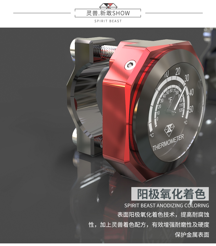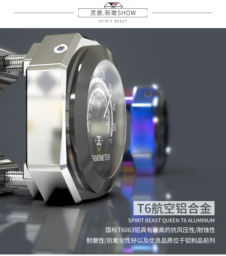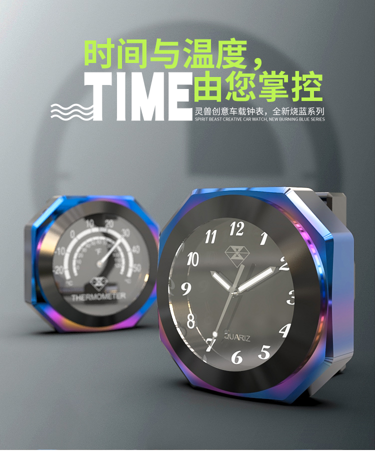 產品特性:靈獸車載溫度鐘表,進口電子,使用時間長達2年左右,全鋁外殼,CNC工藝