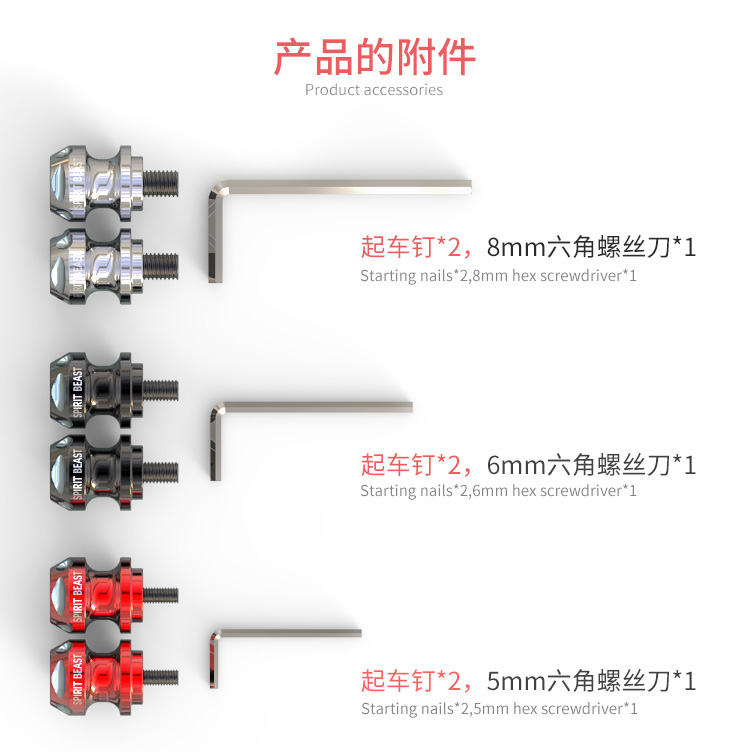 6mm:黃龍300、黃龍302 、黃龍600、貝納利250、錢江凱威0、雅馬哈r25、雅馬哈 z3、雅馬哈r3、雅馬哈r6、、幼獅500、msx125、速珂cu、新感覺250-6、rs 200 bajaj、第一代大龜王、光陽賽艇4008mm:小牛N1S、本田戰神、川崎z650、地平線、升仕310R、GSX250R10mm:春風650NK、春風400NK、春風250NK、春風150NK、梟風二號、Adiva ad3、小忍者300、三陽巡弋300大踏板、隆鑫650、宗申RX3400、川崎忍者250、川崎z1000、永源350