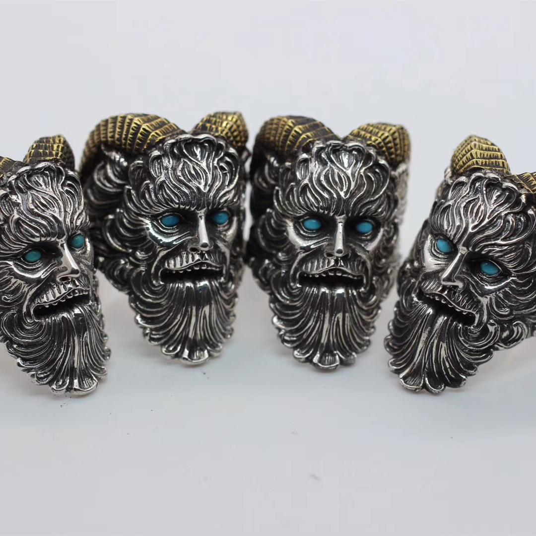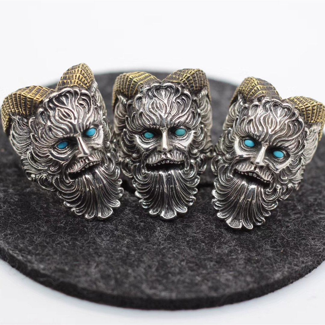 魔王撒旦戒指抖音同款925純銀復古牧神潘恩開口戒指18克左右1入