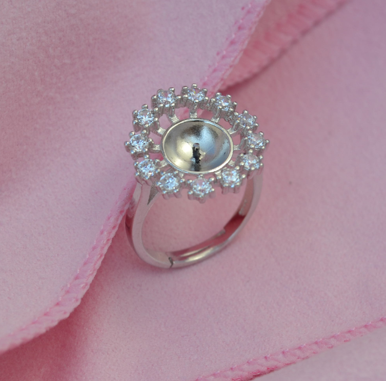 黃密戒指銀空托達標925純銀藍珀珍珠戒指托琥珀戒指托11-13mm珠子1入