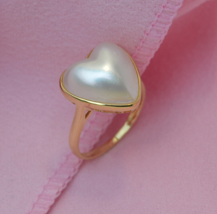 18K金天然馬貝珍珠戒指天然珍珠戒指心形馬貝戒指14-15mm1入