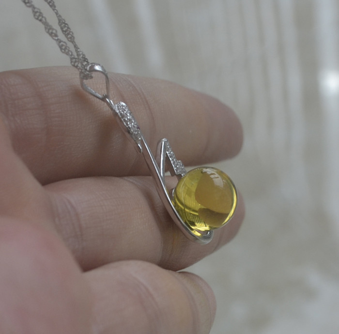 超值正品藍珀吊墜925純銀女款天然琥珀蜜蠟吊墜 送純銀項鏈1入