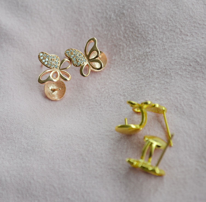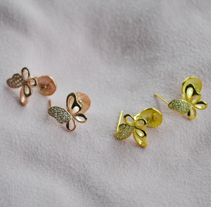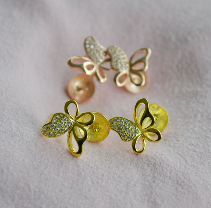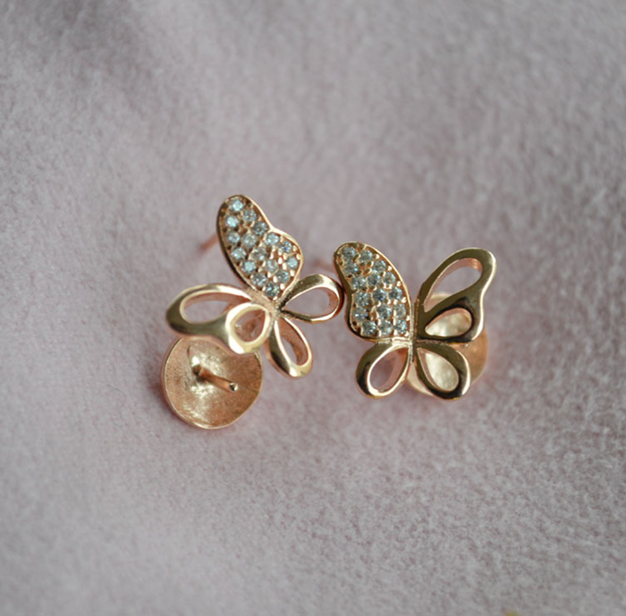 蝴蝶耳環純銀托微鑲金剛鋯可鑲藍珀血珀耳環925純銀DIY空托8-10mm1入