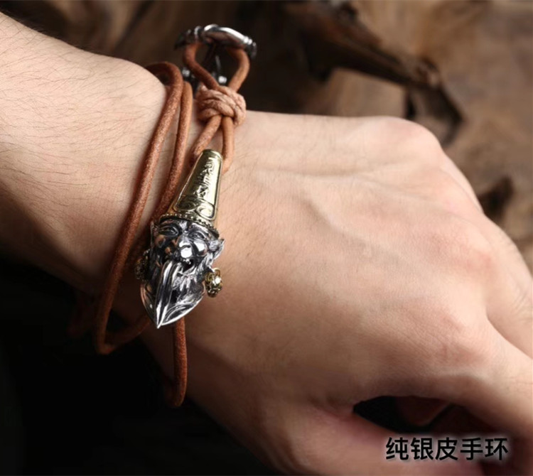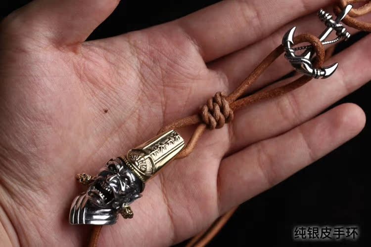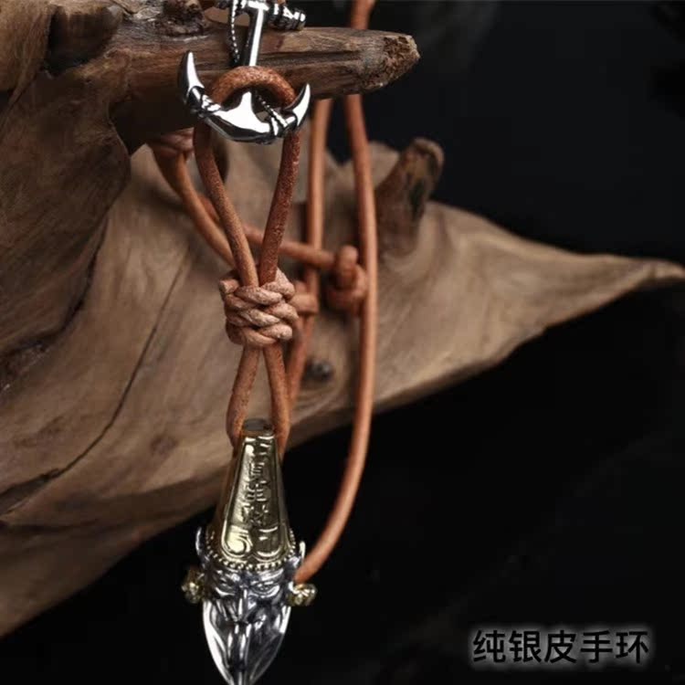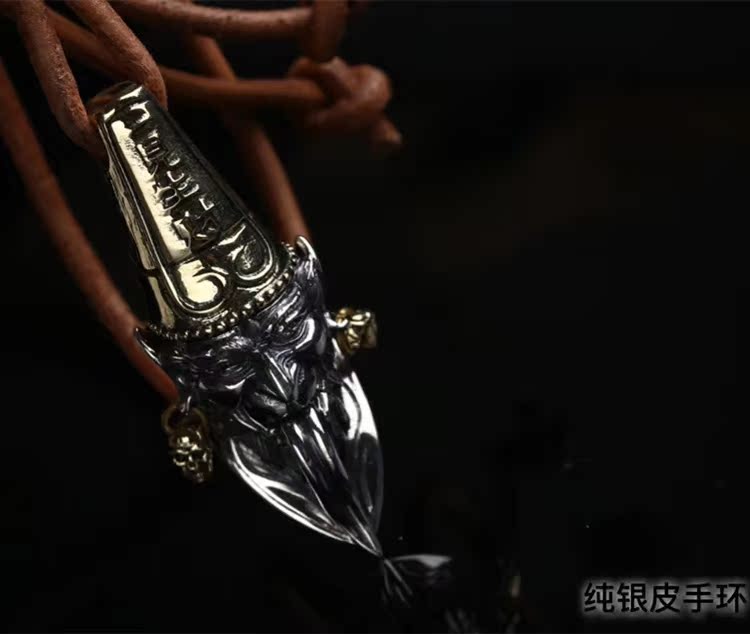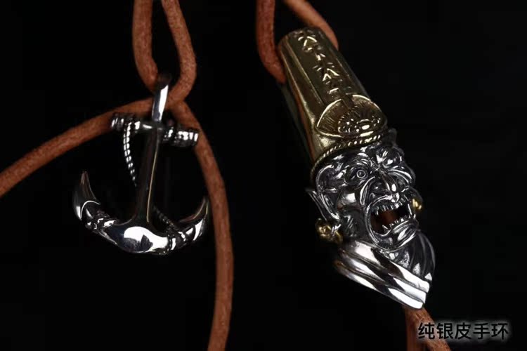 高拋亮光款黑白無常吊墜手鏈s925純銀鑄造 皮鏈子活扣可調節 無常吊墜尺寸:52x25x18 總套重30克左右!帽子耳環純銅鑄造 不用擔心掉色 !可以吊墜 掛飾!白無常在此 百鬼供財 見者生財!