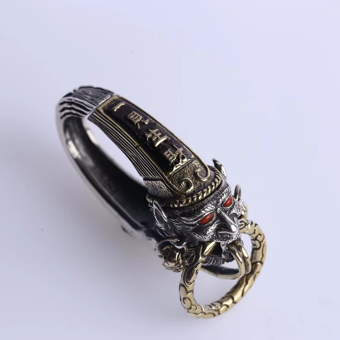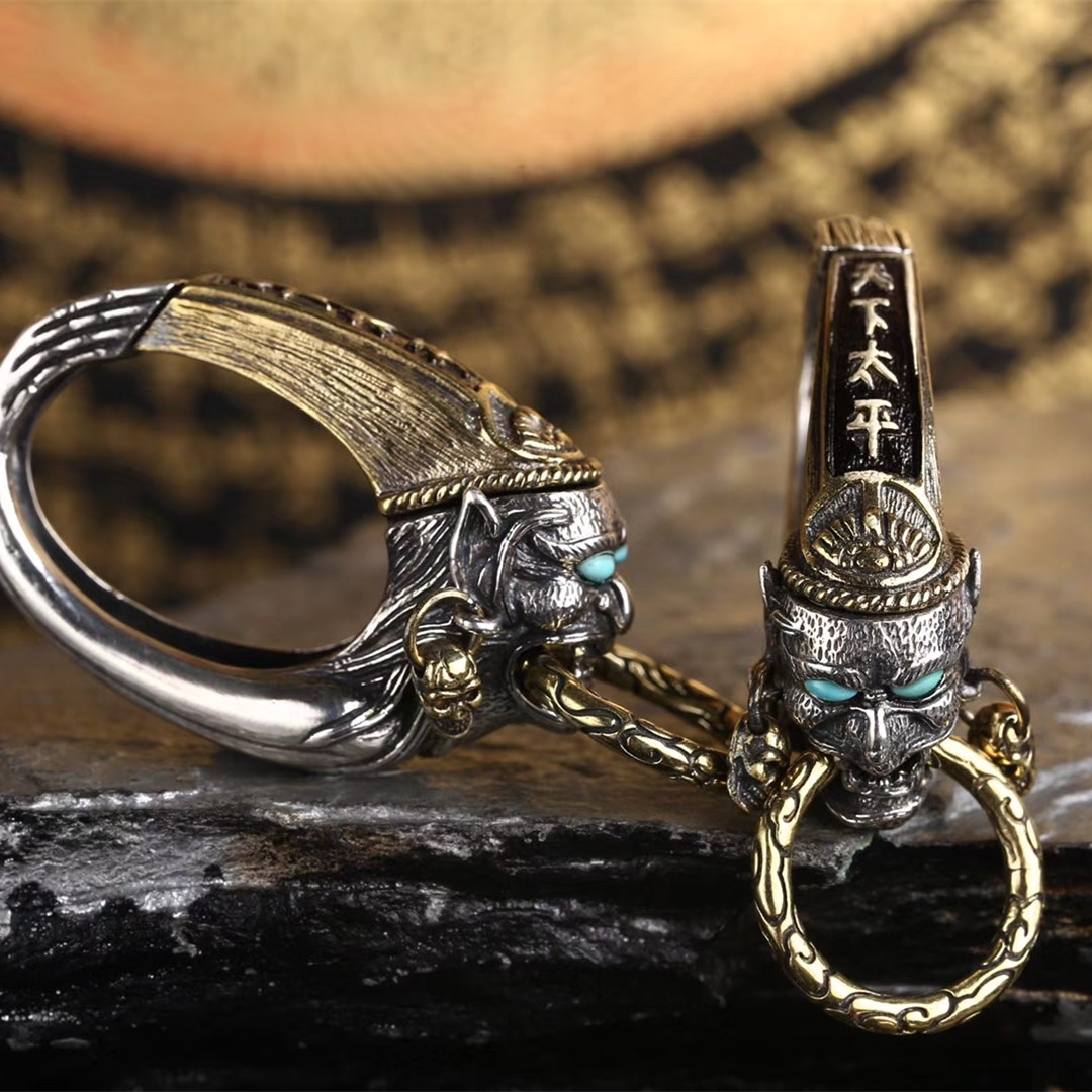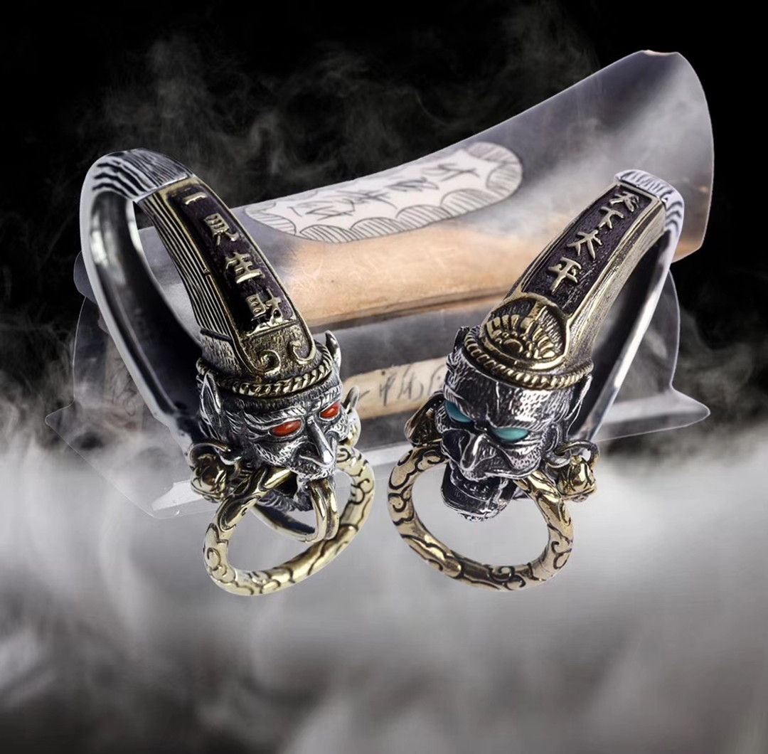 黑白無常.天下太平.一見生財眼睛手工精鑲原礦湖北松石南紅鑰匙扣 掛飾!黑白無常華夏民族之魂!s925純銀鑄造 金色部分純銅原色不用擔心掉色 尺寸:42x28x14 每件24克左右!可以包掛 掛飾 鑰匙扣 鎮宅 安家 庇佑 招財!