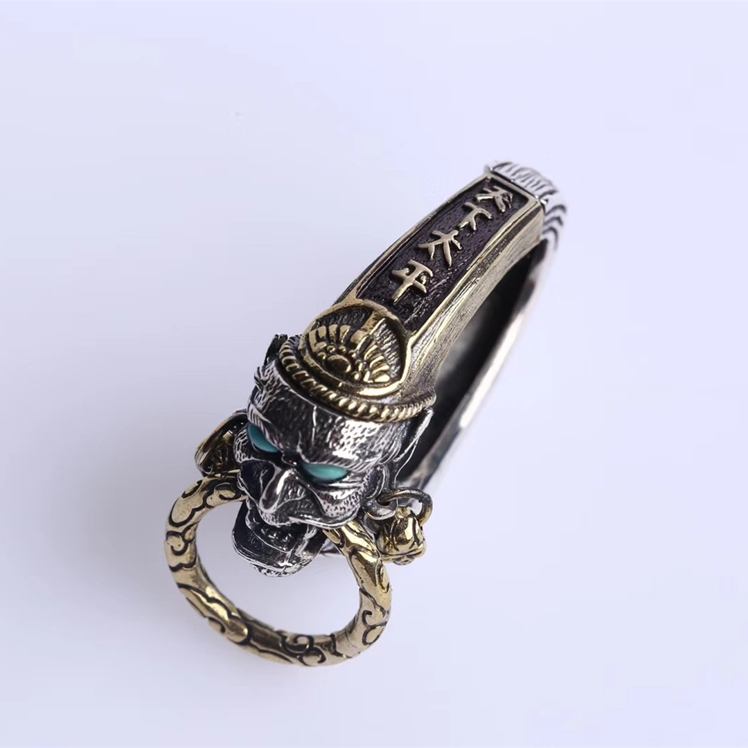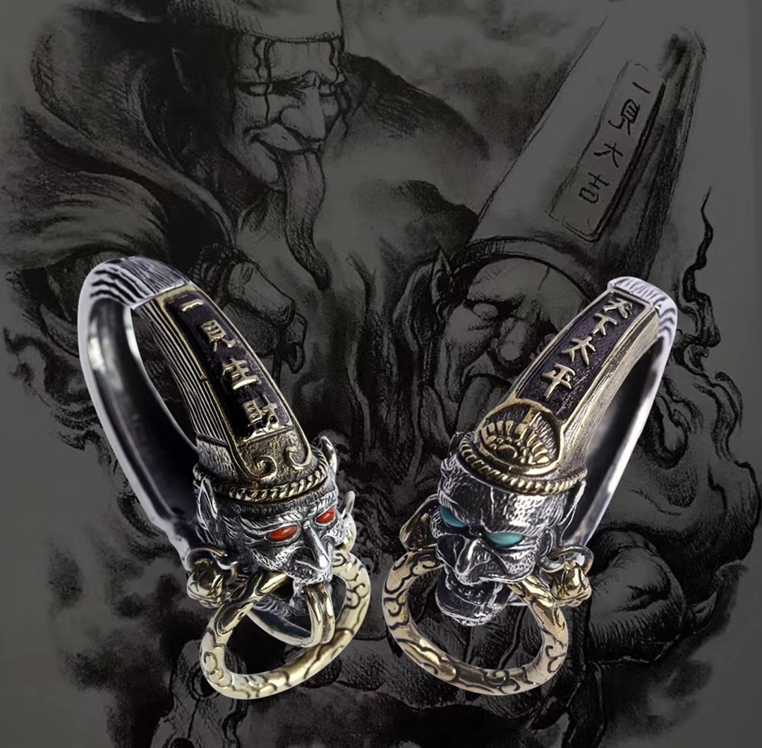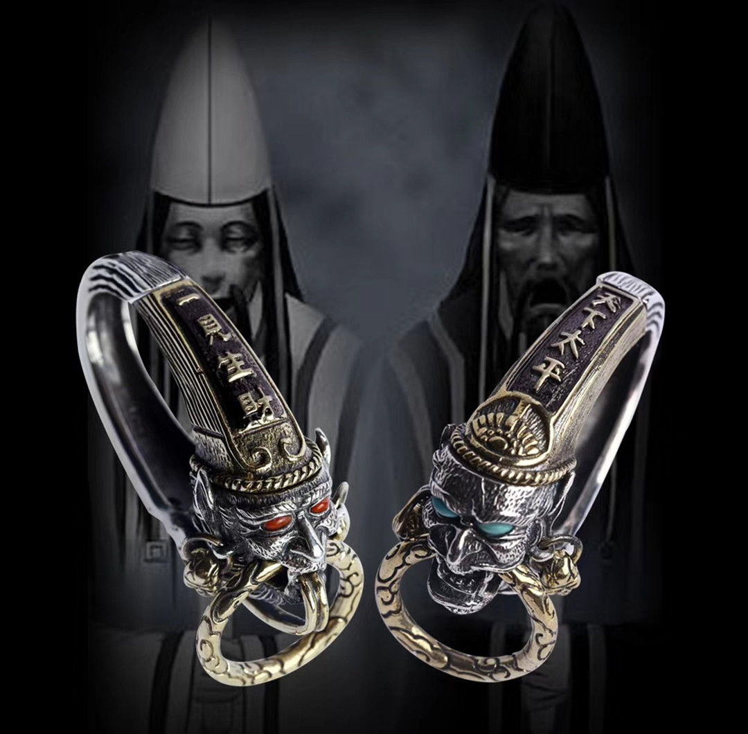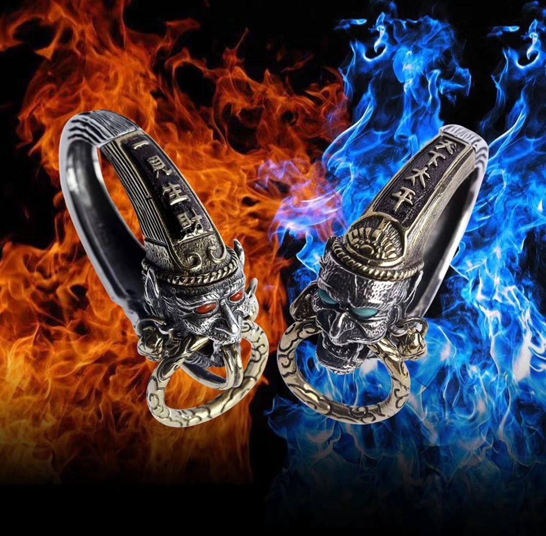 黑白無常.天下太平.一見生財眼睛手工精鑲原礦湖北松石南紅鑰匙扣 掛飾!黑白無常華夏民族之魂!s925純銀鑄造 金色部分純銅原色不用擔心掉色 尺寸:42x28x14 每件24克左右!可以包掛 掛飾 鑰匙扣 鎮宅 安家 庇佑 招財!