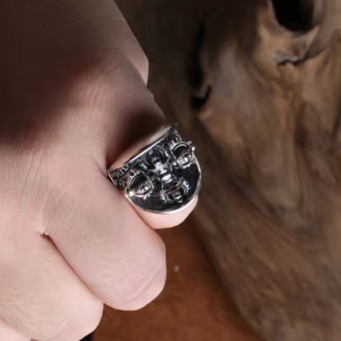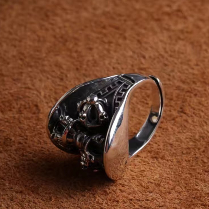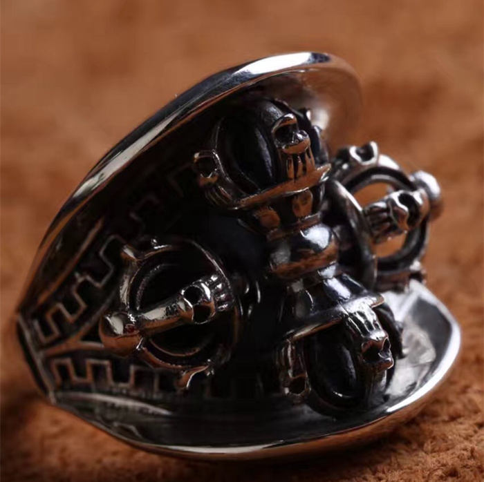 金剛杵.戒指外側金剛杵可以旋轉 s925純銀鑄造 金色眼睛純銅鑄造1入