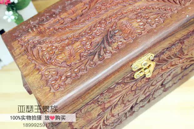 巴基斯坦手工藝品核桃木雕復古雕花三層立體珠寶首飾盒禮品BM5871入