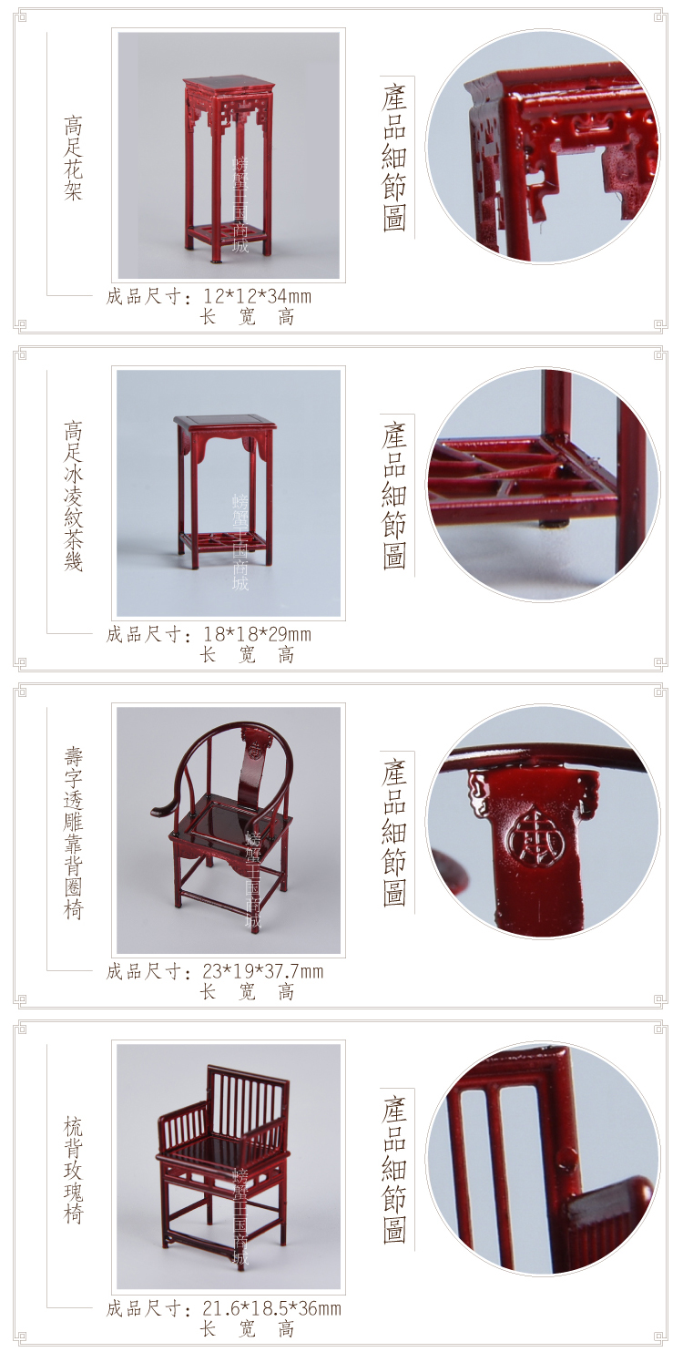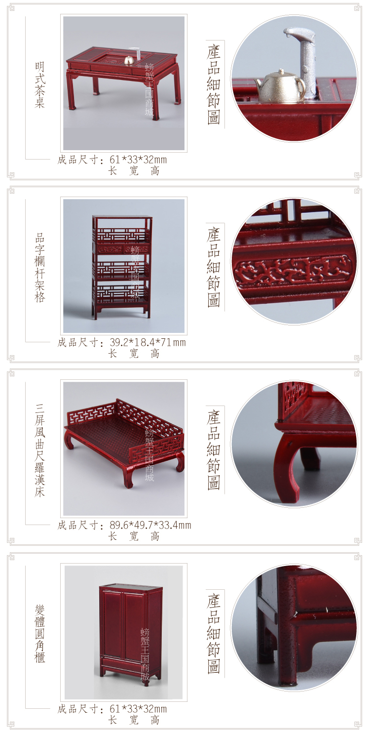 螃蟹王國 建筑模型材料室內景觀擺件紅木色中式家具成品1:251入