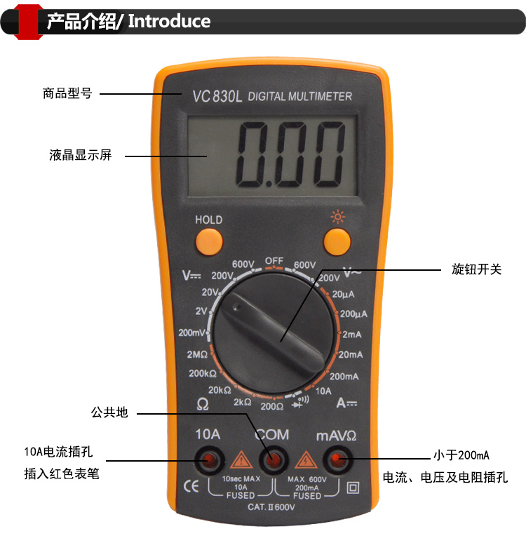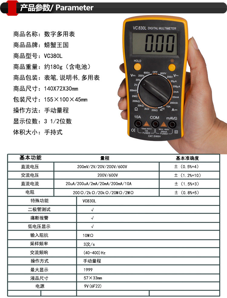 螃蟹王國 數字萬用表 全保護數字萬能表數顯多用表電表 背光防燒1入