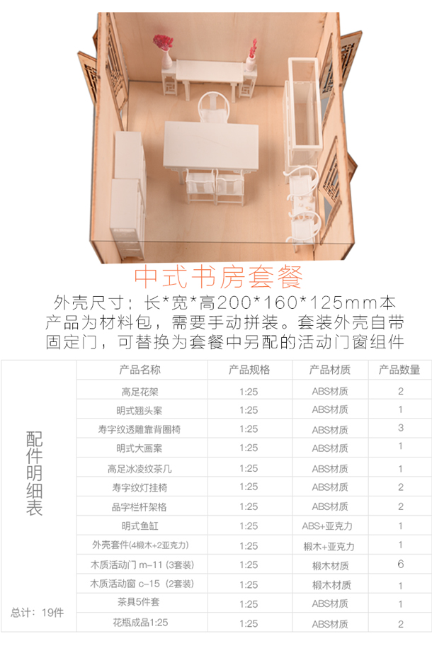 螃蟹王國室內擺件大廳臥室茶室餐廳書房DIY材料 中式家具套裝1:251入