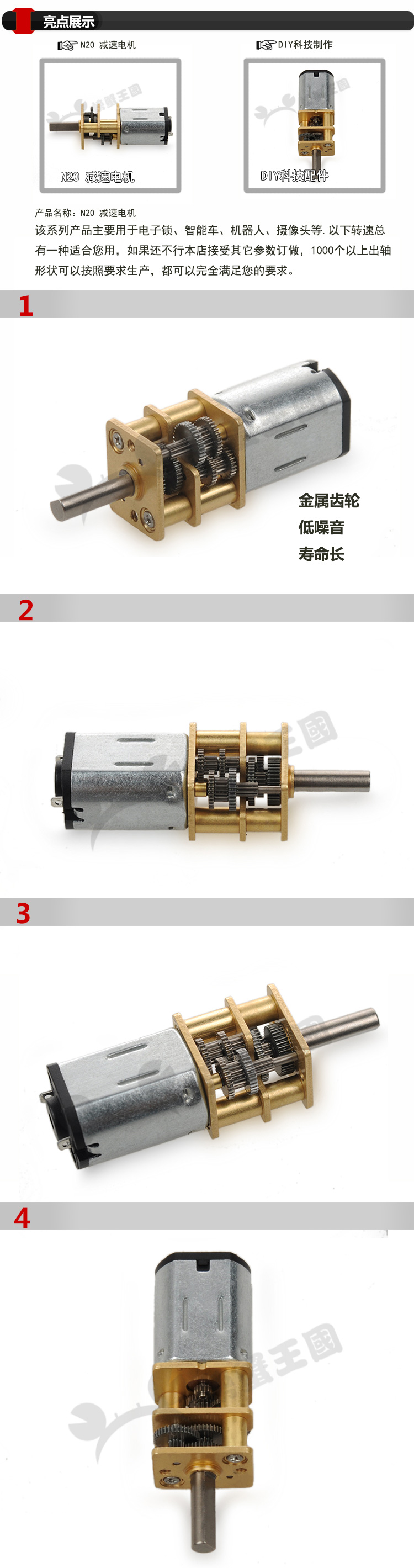 螃蟹王國 6V 8轉 N20減速電機1:1000 微型高扭矩力電機馬達1入